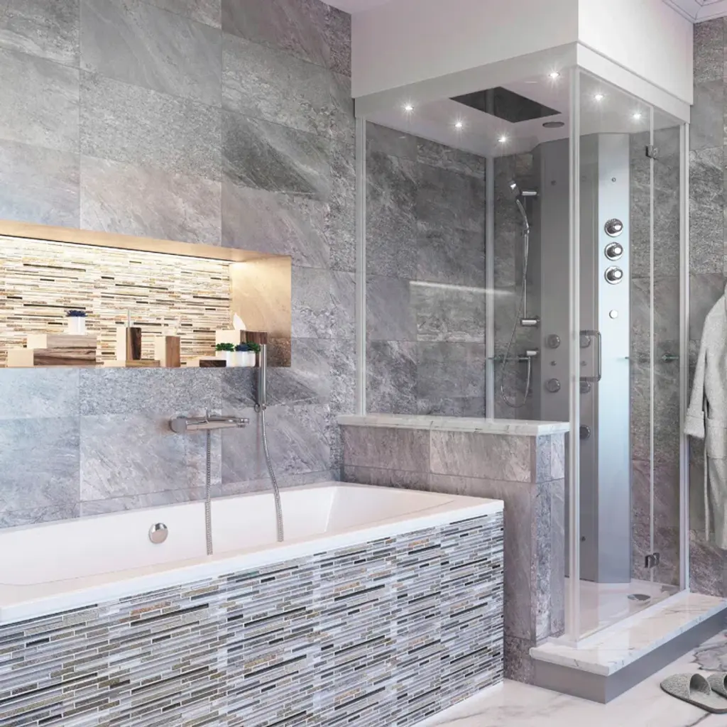 Bring your walls to life with this elegant tile. Having a modern take on a classic natural stone exhibits a stylish demeanor that enhances your walls' beauty. Durability, strong, and resilient performance make it perfect for outdoor spaces. The thin strips like a waterfall pattern create an alluring effect to any space. Because this tile pattern is so unique, it can add visual interest to every wall of your home. Due to its high slip resistance, it can be used for wet area applications such as shower floors and swimming pools.