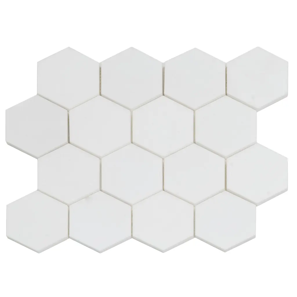 Say hello to elegance with these White Thassos Honed Hexagon Mosaic Tiles, where clean lines meet iconic design. This dreamy crisp-white hue, a classic American white, effortlessly complements both modern and traditional aesthetics. Crafted from luxurious Thassos marble, these tiles boast a honed finish that offers a silky-smooth texture with a subtle matte sheen—perfect for creating a polished yet approachable vibe. The hexagon shape, one of the trendiest picks in tile design, screams chic while giving your space a geometric edge. Whether you're going for a sleek minimalist kitchen backsplash, a spa-inspired bathroom retreat, or a fresh patio upgrade, these tiles have you covered. Bonus? They're tough enough for high-traffic floors, yet refined enough for shower walls. From your garage to your commercial spaces, this tile works as hard as it looks good. Easy to install thanks to the mesh-mounted backing, they're a win for pros and DIY enthusiasts alike. Pair them with right mortar and a sealer, and you're set for years of beauty and durability. Go ahead, make your space the most pinned room on the block!
