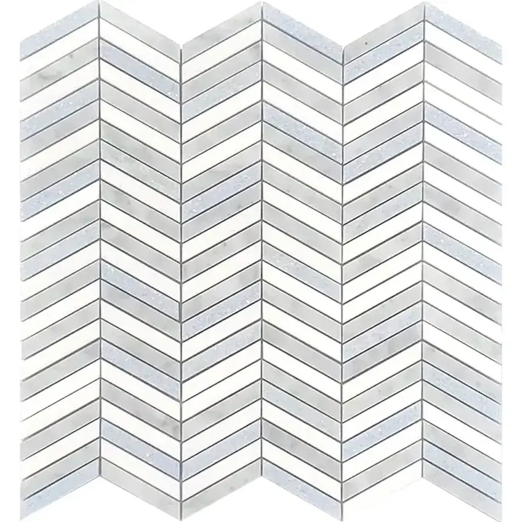 Make a bold statement with this polished Crystal Sand Chevron tile. Its soft, earthy gray tones and delicate veining capture a natural, rustic-chic aesthetic, while the polished surface adds just the right amount of shine for that upscale look. The chevron pattern is a design classic, offering eye-catching geometry that's both modern and timeless—your space will thank you. This 11.3x12.5" mesh-mounted sheet is all about versatility. Whether you're elevating your bathroom walls, creating a sophisticated shower floor, or adding a trendy backsplash to your kitchen, this tile does it all. It's durable enough for high-traffic commercial floors and patios but refined enough for a steam room or poolside retreat. Easy to install and maintain, this tile is perfect for creating spaces that feel fresh, stylish, and uniquely yours. It's more than just a tile; it's a conversation starter. Let this chevron beauty take your design to new heights—because basic is boring, and your space deserves better!