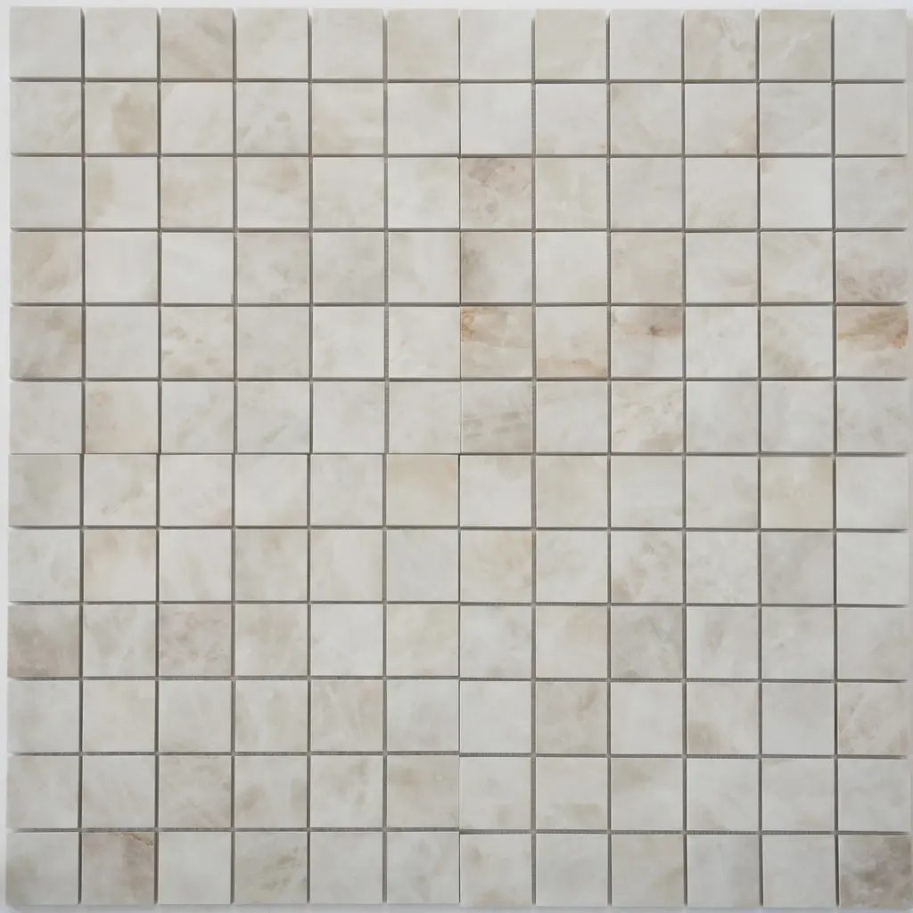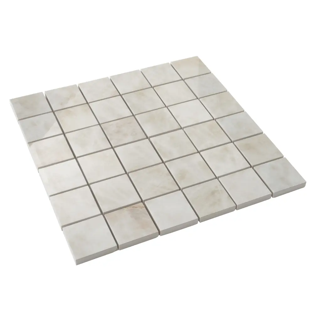 The Crystal White Mosaic 12x12 tile showcases an intricate interplay of soft alabaster white hues and delicate golden veining in each 2x2 chip. Mounted on a mesh backing, it ensures easy and precise installation, perfect for smaller or curved areas. Its lappato finish provides a gentle glow, ideal for creating high-end backsplashes, vanity accents, or decorative shower niches. Frost, stain, and chemical resistance ensure this mosaic works as beautifully as it looks, making it a practical choice for kitchens and bathrooms. Pair it with light gray or beige cabinetry, natural stone countertops, and brushed gold or matte black fixtures for a refined aesthetic. For the best results, install using Laticrete 254 Platinum mortar and Permacolor grout, ensuring a smooth and long-lasting finish.