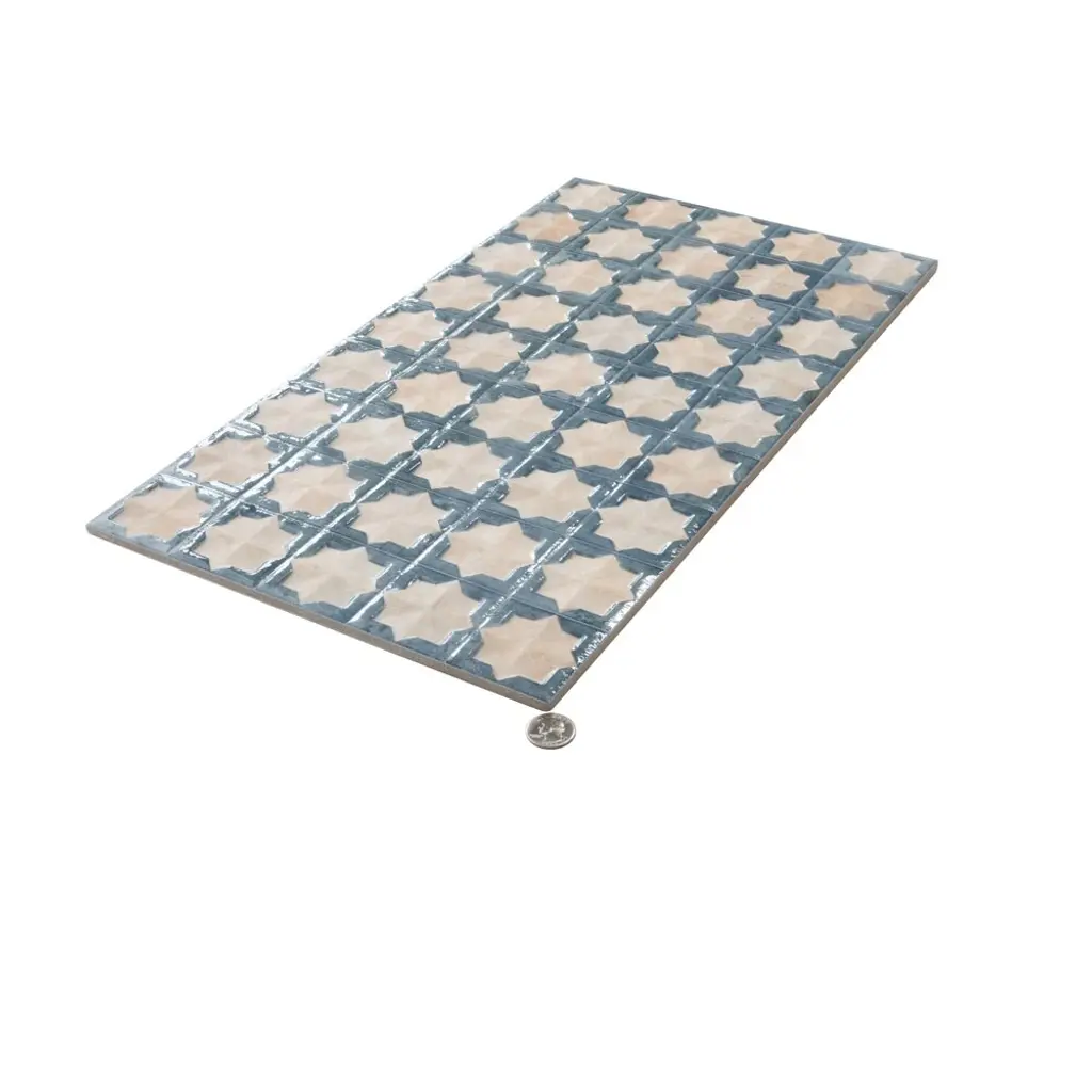 Throughout commercial and home décor projects, Citadel Aqua 12X22" Porcelain Tile can be used to add refined elegance to interior and exterior walls. Be it a farmhouse living room or a contemporary hotel ensuite, the embossed surface and beige and blue colorway make for a swoon-worthy statement. Because it is made from porcelain, this patterned tile is durable enough to be used on backsplashes, shower walls, and bathtub surrounds. Made from two contrasting finishes: glossy and matte, it's perfect for making any wall come alive. Best of all, Citadel Aqua Porcelain Tile will complement any aesthetic you dream up—from classic to contemporary and everything in between. This large-format tile will create a seamless whole yet seem like individual patterned pieces, further adding to its distinctive appeal. Porcelain is an undeniable choice for tile work that stands the test of time, both in style and performance!