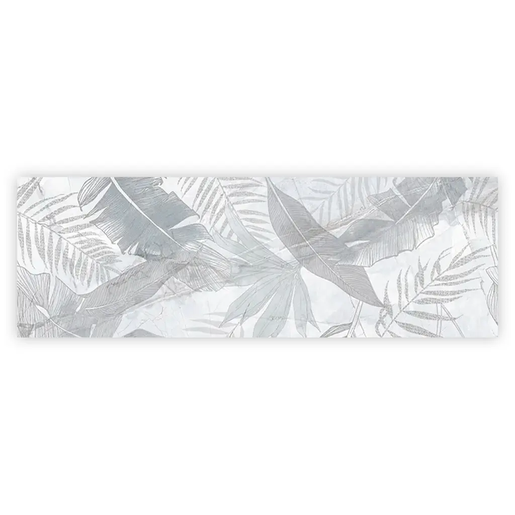 This tile brings nature indoors with a soft, breezy design that feels straight out of a tropical retreat. Featuring delicate banana leaves in layered shades of silver-grey, the subtle detailing pairs perfectly with a neutral palette for a look that's contemporary yet soothing. The oversized rectangular shape (16"x48") makes it ideal for creating standout accent walls or elevating your spa-like bathroom. Its moderate variation (V3) ensures every piece feels uniquely crafted without overwhelming your space. Crafted with a durable 13/32" thickness and a luxurious 3rd-fired finish, this tile is perfect for indoor walls, chic shower backsplashes, or steam rooms designed for ultimate relaxation. Whether you're revamping a sleek kitchen, setting the mood in your powder room, or turning your living room into an Instagram-worthy backdrop, this tile nails versatility with style. Just skip the high-traffic floors—this beauty is meant to be admired, not stomped on. It's that perfect blend of artistic and practical, like a good cup of artisanal coffee—refined but not too precious. The matte finish and soft tones keep the vibe cool and modern, while the intricate leaf design whispers "vacation vibes" every time you look at it.