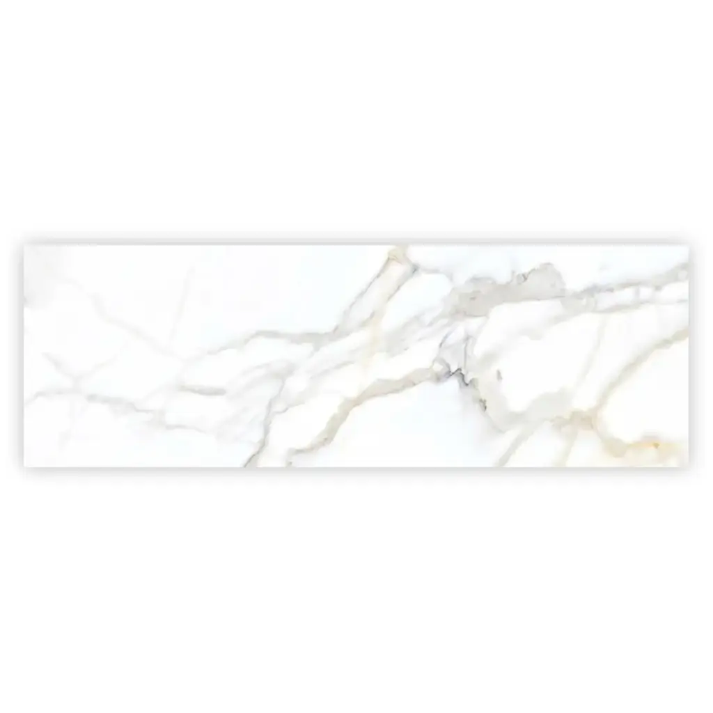 This tile is a statement of modern luxury with a sophisticated twist. Featuring a timeless Calacatta marble-inspired look, its soft white canvas is crisscrossed with veins of warm gold and subtle grey, mimicking nature's artistry with precision. The elegant matt finish gives it a contemporary edge, ensuring it's not overly glossy but refined and inviting. Its oversized rectangular shape (16"x48") makes it a perfect fit for creating seamless walls or stretching the perception of space on light-traffic floors. With a sturdy 13/32" thickness and 12 porcelain faces to keep the design varied, this tile is all about versatility. It's the go-to choice for spa-like shower walls, chic steam rooms, and trend-forward indoor accents. Think accent walls in open-plan kitchens or sleek fireplace surrounds—spaces where you want both durability and style. Skip the heavy traffic floors and pool areas, but embrace its ability to handle heat up to 150°F for cozy spaces. This tile is for those who value subtle drama and effortless elegance. Easy on the eyes, durable under pressure, and brimming with sophistication, it's like wearing your favorite cashmere sweater—cozy yet oh-so-classy.