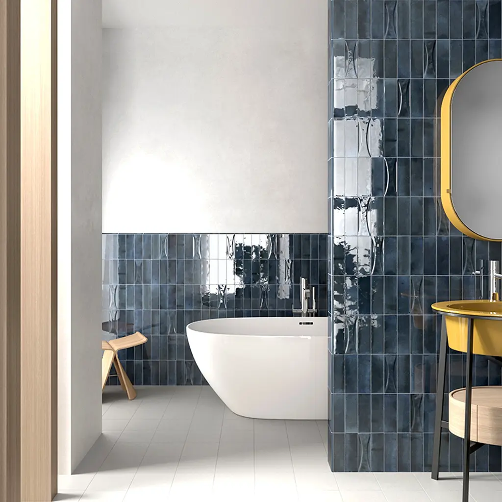 Vision a design project immersed in the depths of the ocean, where shades of dark blue evoke a sense of mystery. The dark blue palette of this ceramic subway tile captivates attention and invites exploration on any surface it's applied. As the timeless subway shape combines with the organic beauty of slate look, it creates a harmonious visual symphony. Exuding a sense of elegance and authority, incorporating this bold subway design into your project will allow you to create an ambiance that is refined and commanding! Just like the vastness of the universe, a dark blue tile backsplash will infuse your kitchen design with a sense of grandeur and infinite possibilities! Add a touch of regality and sophistication to your bathroom project using this ceramic as a subway tile backsplash behind your vanity, around the tub or inside the shower area. Allow your creativity to flourish using it in a stacked pattern for a modern touch, or a basketweave pattern for a traditional feel.
