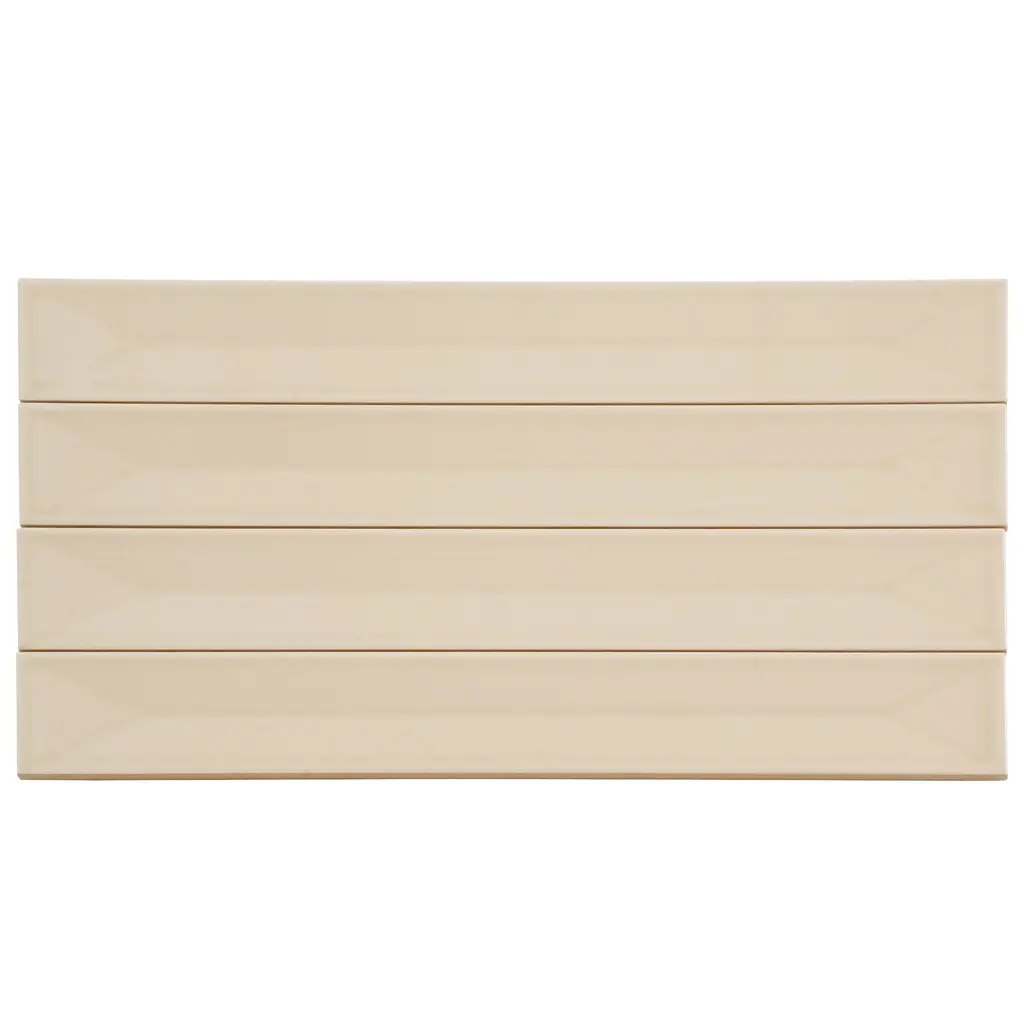The Deco Sand 2x16 ceramic tile combines the versatility of a neutral palette with the intrigue of a beveled surface. Its creamy beige color and glossy finish create a timeless, soft look that enhances both contemporary and classic interiors. The beveled design adds dimension, casting subtle shadows for visual interest. Ideal for accent walls, shower enclosures, and spa-like steam rooms, this tile balances simplicity with elegance. The pressed edges ensure a precise fit, while the glossy surface interacts with natural and artificial light, creating a soft glow. Its versatile tone pairs beautifully with earthy or metallic accents, making it a go-to choice for designers seeking neutral sophistication.