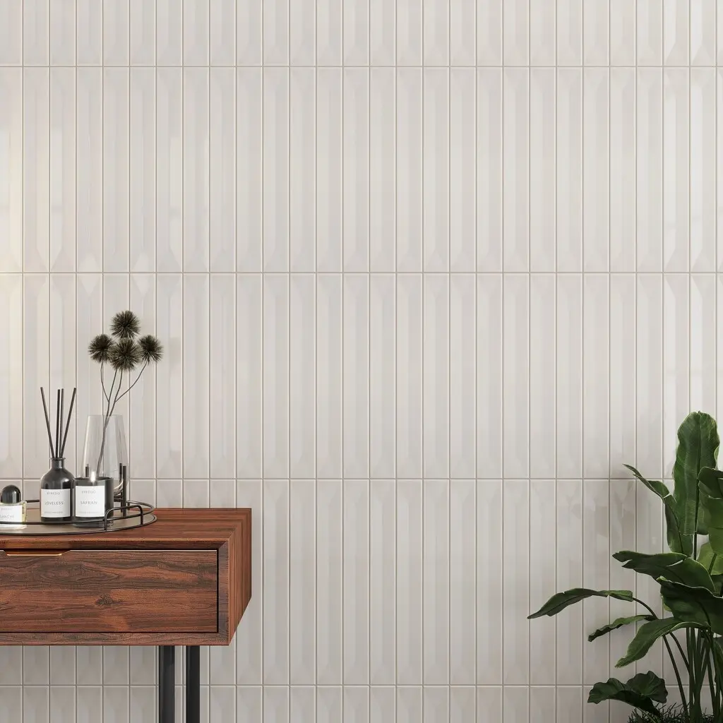 The Deco Gray 2x16 ceramic tile combines the classic elegance of warm gray with the texture of a beveled surface. Its glossy finish accentuates the neutral hue, while the beveled design creates subtle depth and a play of light and shadows. Ideal for feature walls, bathroom installations, and spa-like steam rooms, this tile provides a sophisticated, timeless aesthetic. The pressed porcelain edges guarantee precise alignment, while its versatile color works beautifully in modern and traditional interiors alike. Pair it with bold accents for contrast or neutral palettes for a harmonious, calming effect.