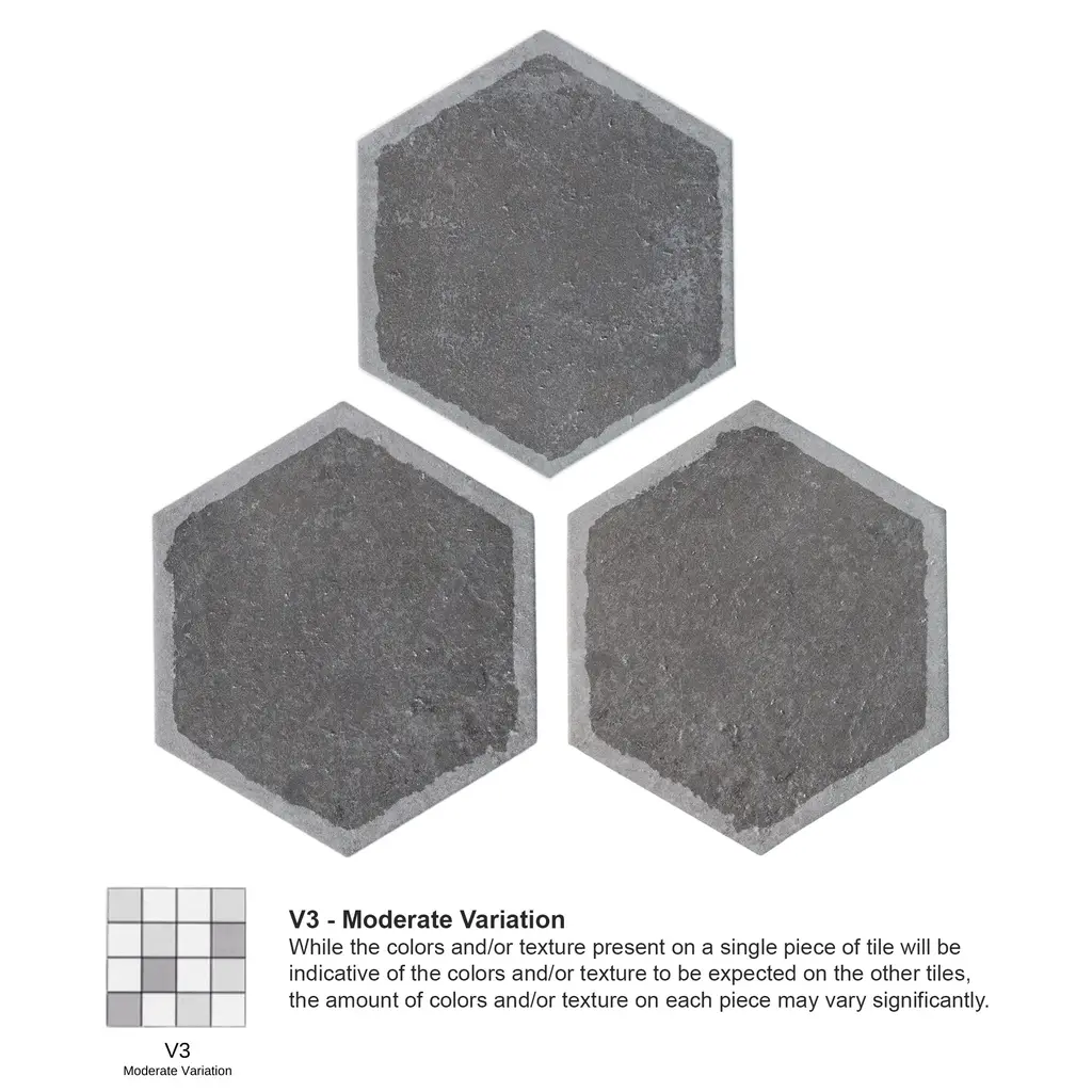 Are you looking for a tile that gives a minimalistic look to your interior and exterior spaces? Our 9 X 10 porcelain hexagon tiles, made in Spain, are a perfect fit for residential and commercial walls and floors, except pools. Depicting a realistic concrete gray tone with dark gray rims, they give a subtle look and feel. Be it your kitchen bathroom, shower, or outdoor spaces, you can experiment with vertical (flat-topped) and horizontal (pointy-topped) orientations or mix and match with other colors and tones to create a unique design. Their matte finish hides imperfections like bumps, cracks, and dirt, making them easy to maintain in high-traffic areas. Our porcelain tiles have 24 faces with V2 slight variation adding up to the dynamic look. They are frost, scratch, and stain-resistant. Their wood and cement-like appearance brings durability and style together, perfect for moisture-prone areas. Strong, dense, and refined, they offer the ideal solution for low- and high-traffic floors.