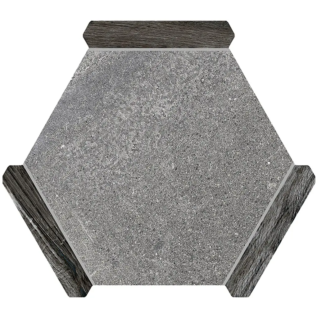 Our gray 9 X 10 inches Hex Matte Porcelain Tile has a neutral hue, delivering yet a fresh, modern aesthetic, that makes a bold statement. Create a visually striking look with our unique hexagonal shape which can be oriented in either a flat-topped or pointy-topped direction. Enhancing the contemporary design and adding to the tile's refined look is the matte finish that hides imperfections and provides a soft and grounded feel. These tiles have a grayish center accompanied by an elongated hexagonal shape, reminiscent of picket tiles in a dark gray hue on three sides. They have 24 distinct faces and a V2 slight variation giving that artisanal feel and, at the same time adding to the authenticity of your interior or exterior spaces. Made in Spain, these tiles are beautiful and charming suiting both residential and commercial applications, including kitchens, bathrooms, and high-traffic areas, excluding pools.