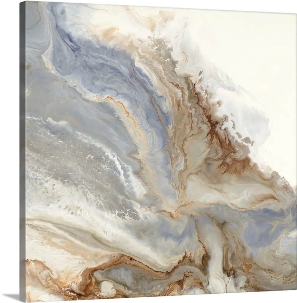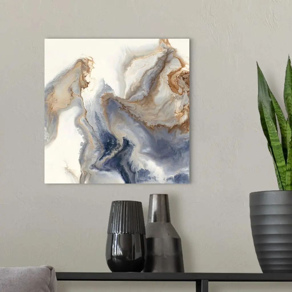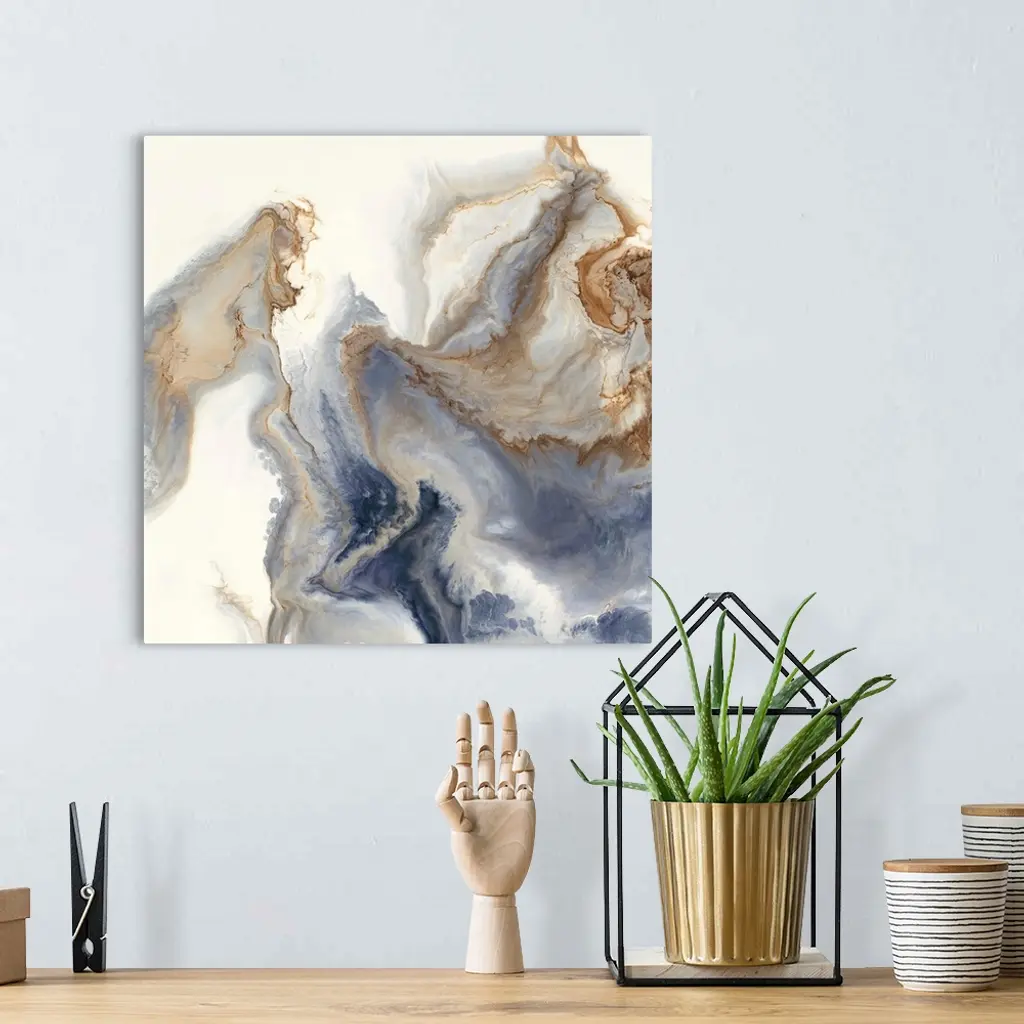 Gray, silver, cream, and gold hues marbling together on a square canvas.