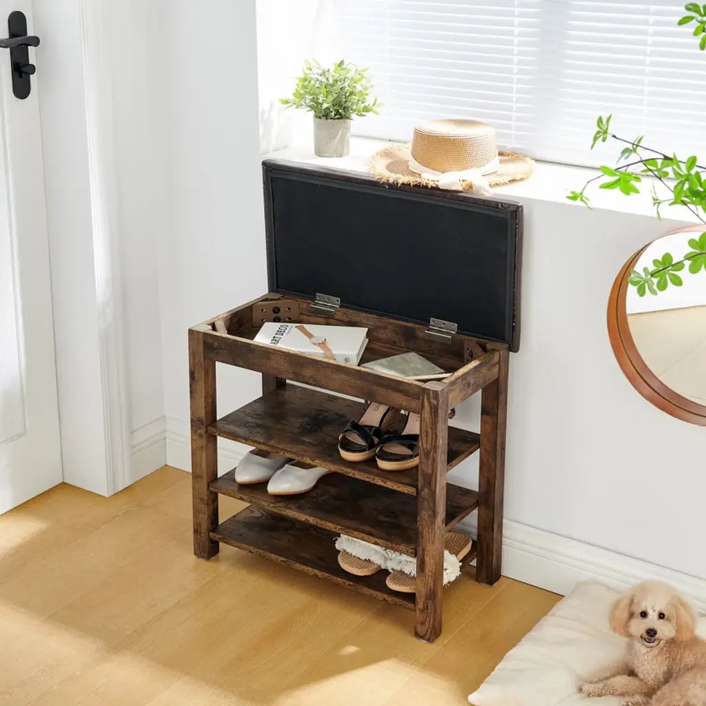 Aprilsoul 24.00"a Height-adjustable Shoe-changing Bench Made Of High-quality Wood, Equipped,black