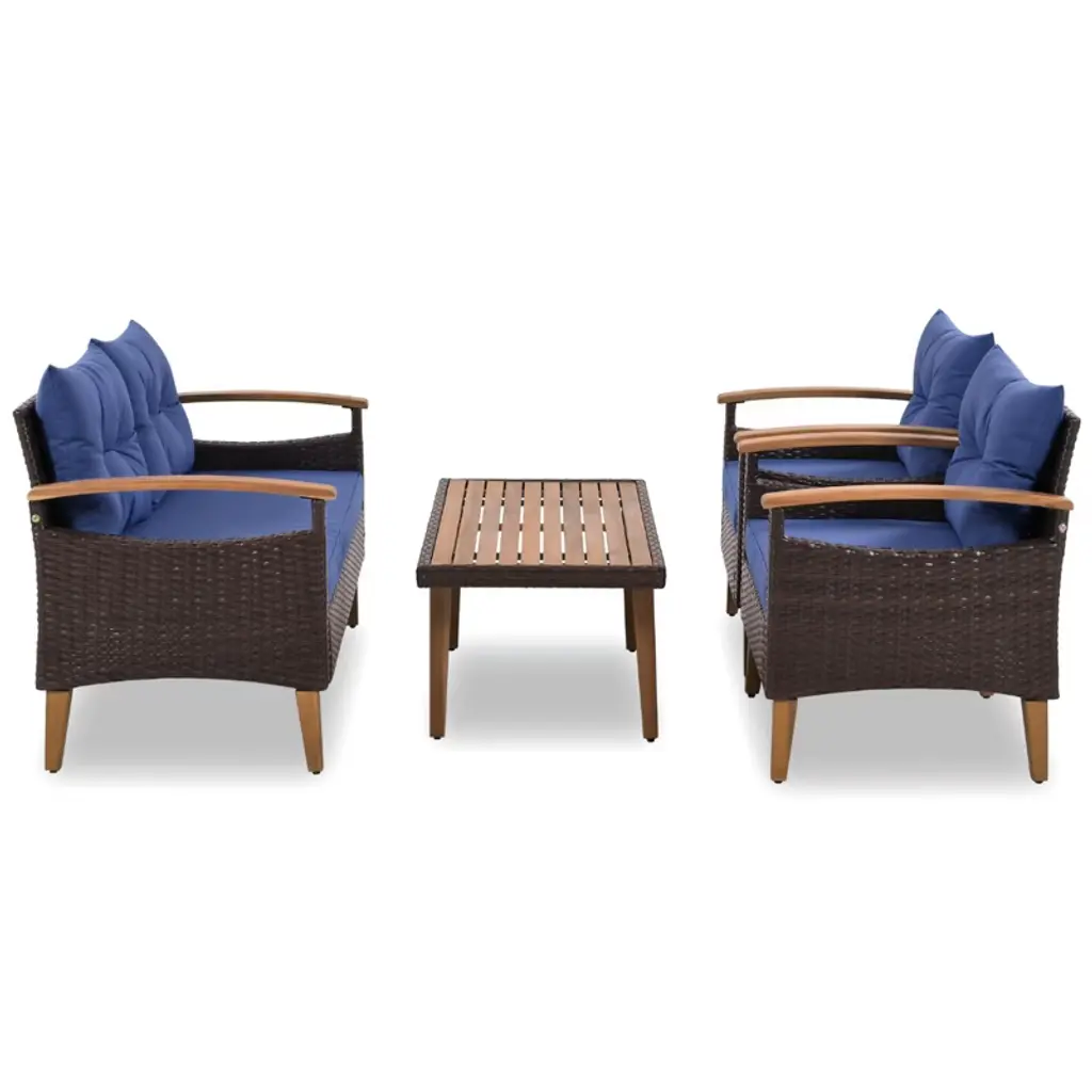 Aprilsoul 4-piece Garden Furniture, Patio Seating Set, Pe Rattan Outdoor Sofa Set, Wood Table And Legs, Blue