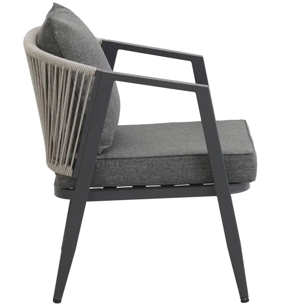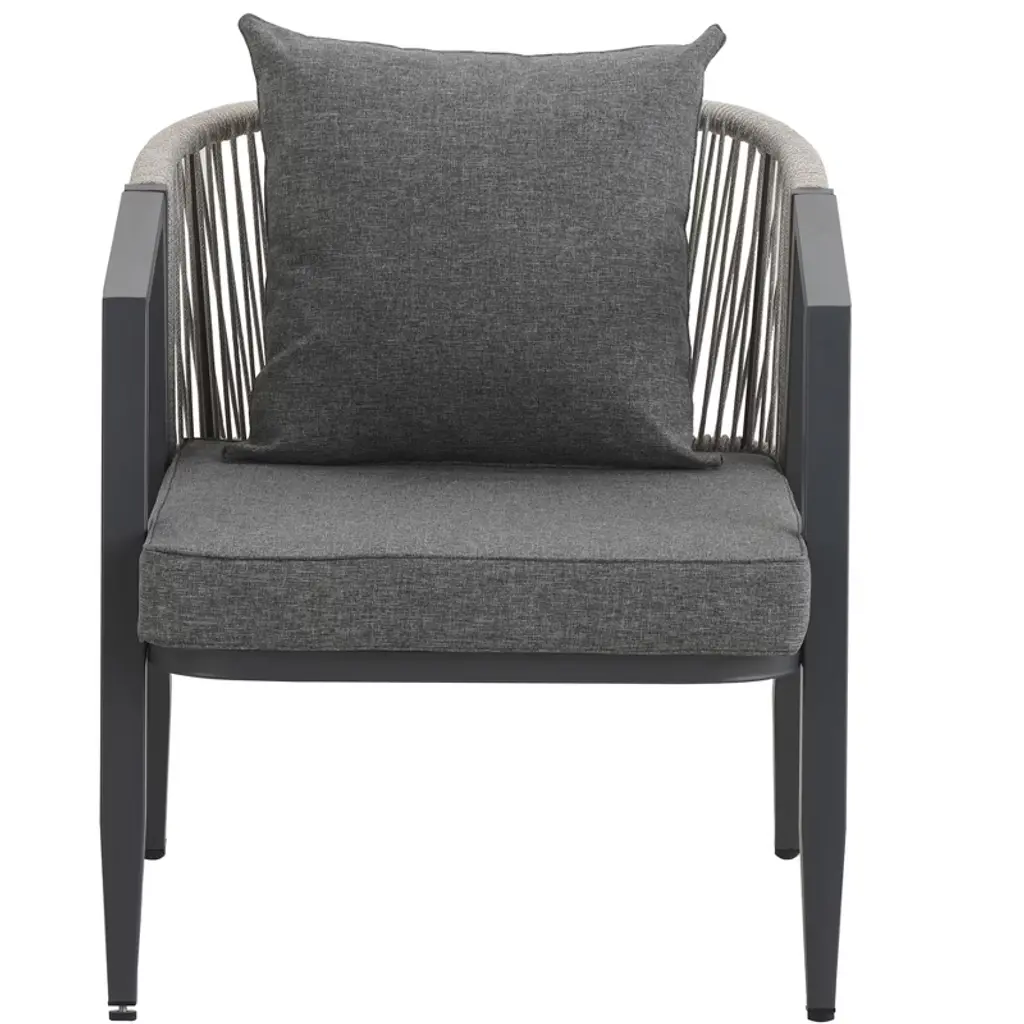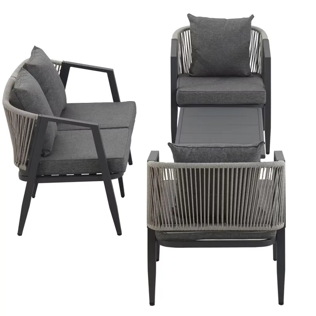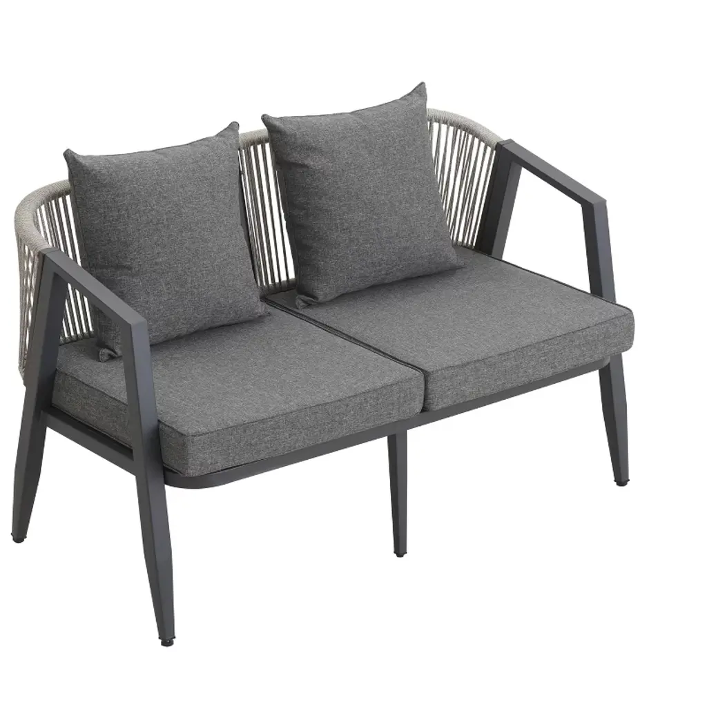 This outdoor seating set features a sturdy iron frame for long-lasting strength and stability, ideal for gardens, lawns, poolside, and more. It includes two single chairs and one double chair, each with cushioned seating and back pillows for maximum comfort—soft padding ensures a relaxing experience for outdoor relaxation or time with family/friends. A matching small iron table complements the set, boasting sturdy construction and a simple contemporary style, perfect for holding drinks, snacks, or decor to enhance outdoor living. The cushions are designed for outdoor use, withstanding elements while offering support. Its versatile, stylish design fits patios, balconies, or gardens, blending functionality and charm. With straightforward instructions and provided hardware, assembly is quick and effortless.
