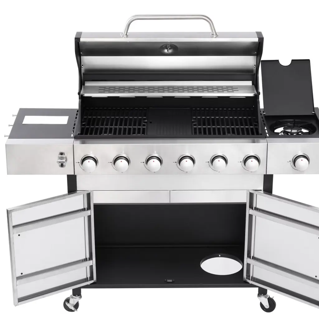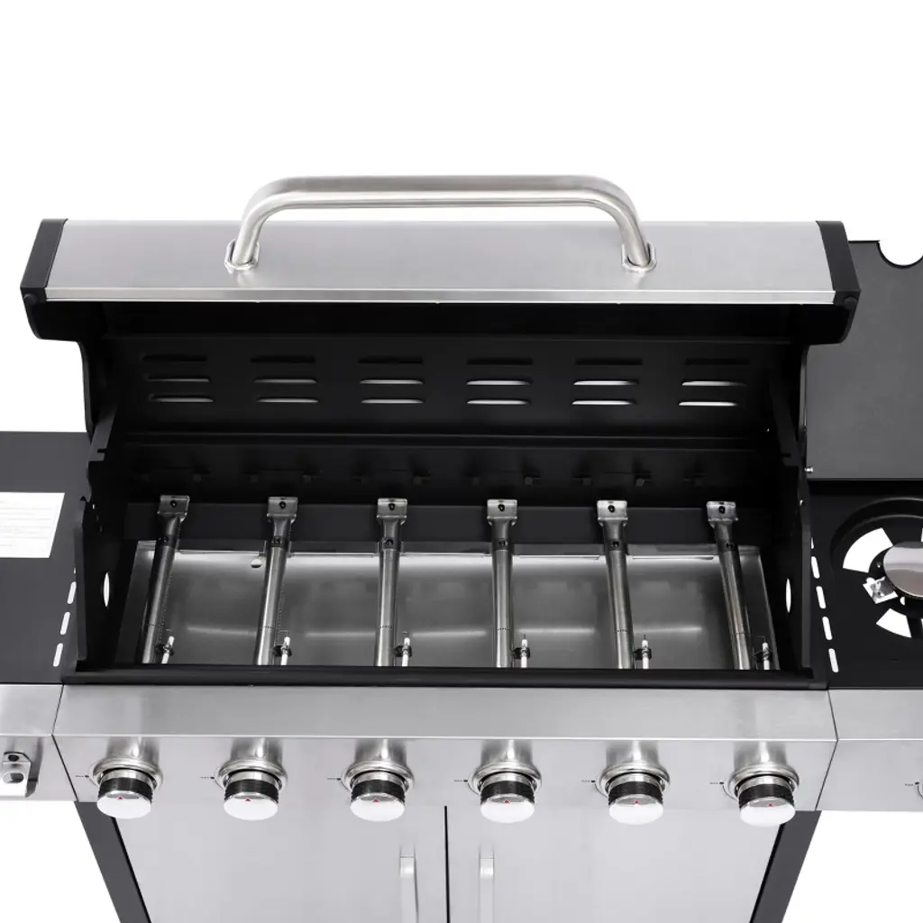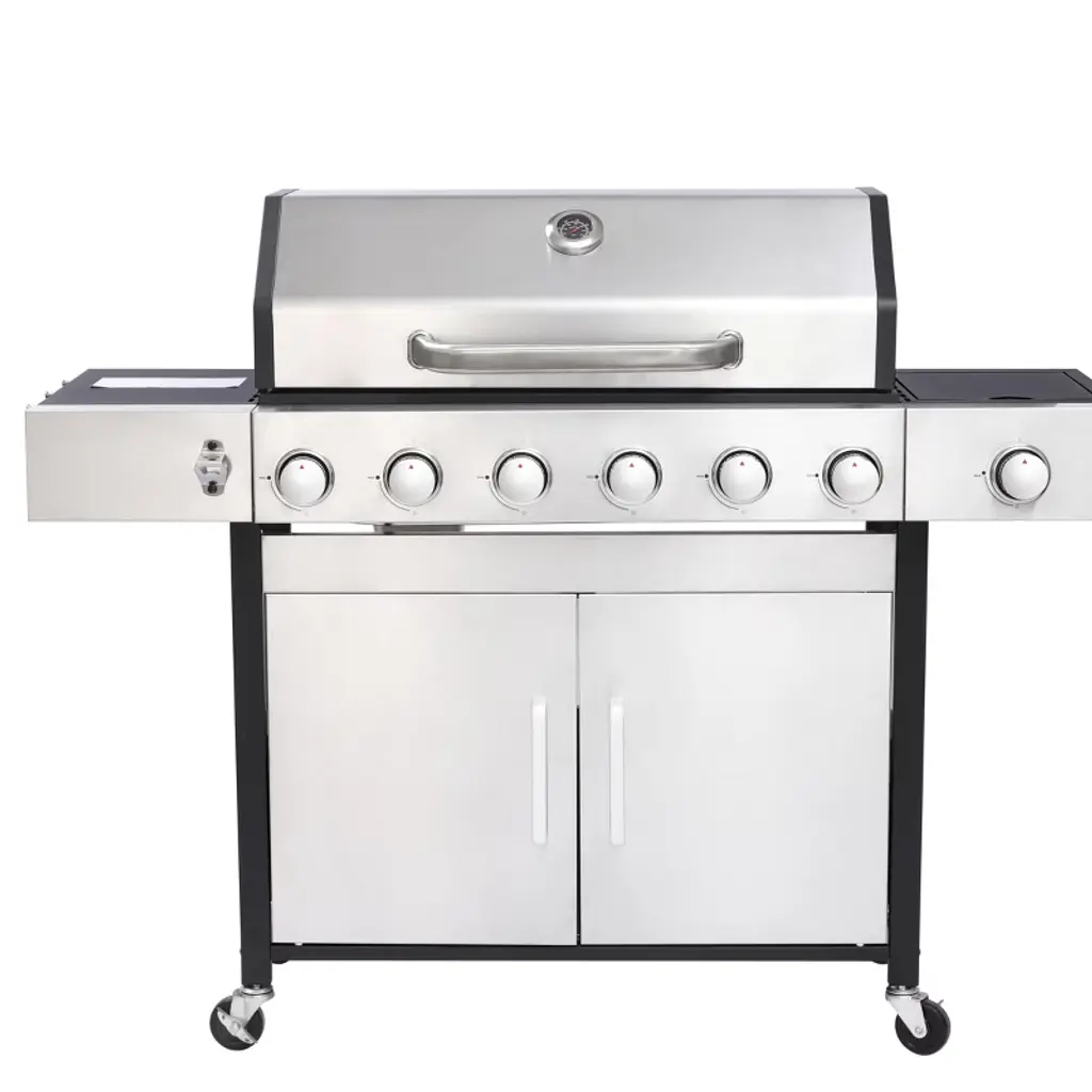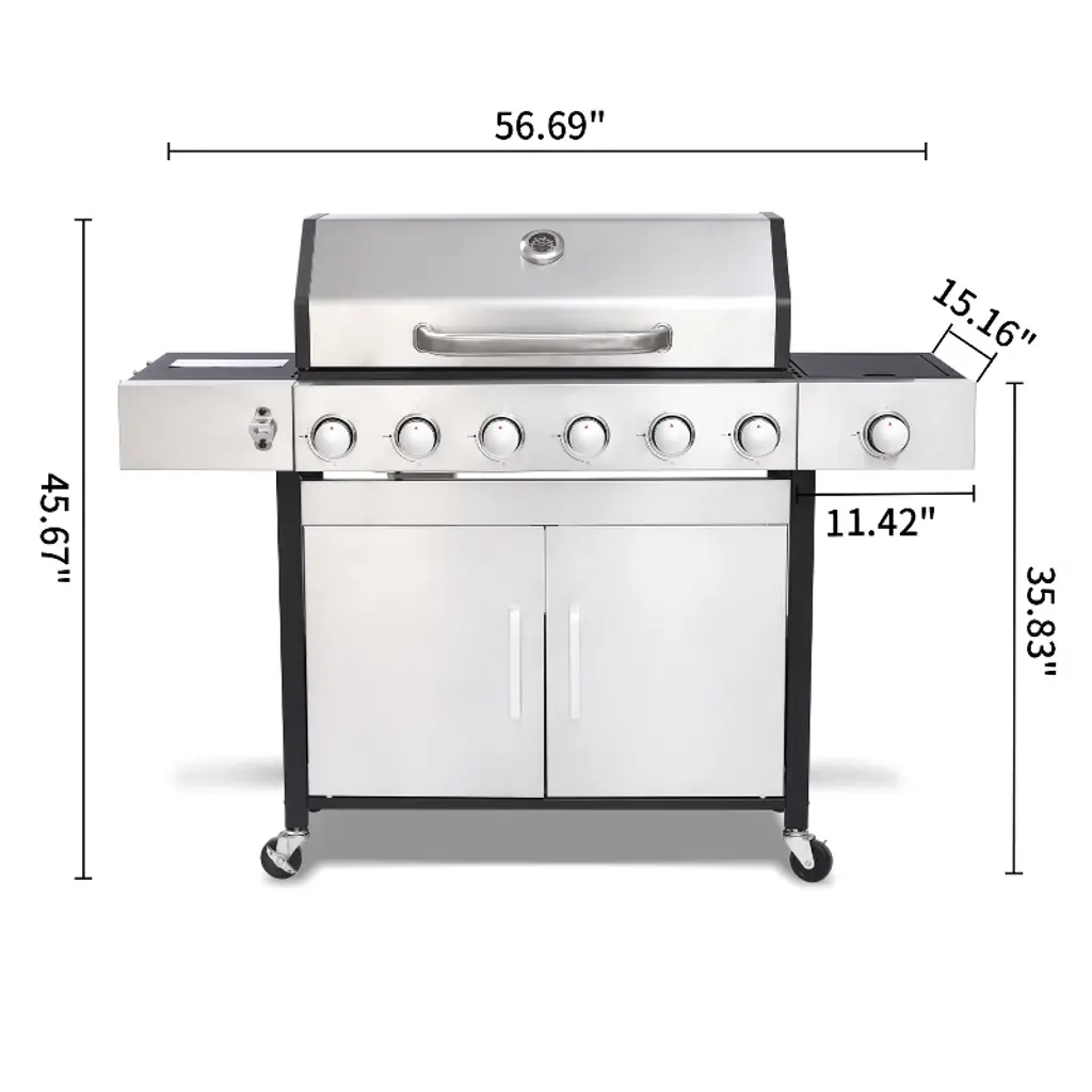 Aprilsoul56.69"6-burner Propane Gas Grill With Side Burner,silver