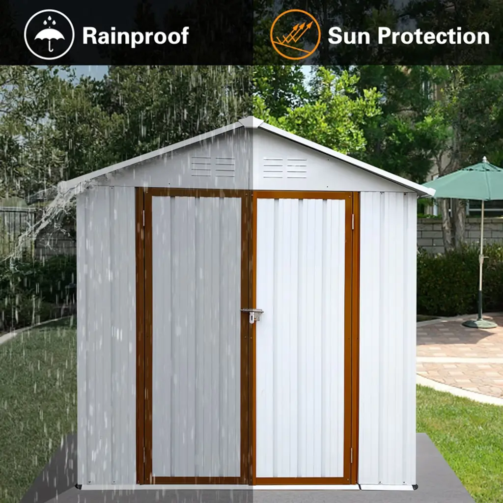A metal garden shed is typically a simple, single-storey roofed structure. Metal sheds are a good choice when long-term strength and resistance to fire, rot, or termites is desired. Apex roof sheds have the apex gable ends and are the most popular and economical type of metal shed design. Pent roof sheds have a roof with slight slope and is almost flat in shape, the design can ensure water does not sit on top of the shed. Application Our metal garden sheds are the best choice for your outdoor storage. Most commonly, they can be used for storage, hobbies, or as a workshop. Model 4ft x 6ft Store & protect your garden supplies in this strong & durable patio storage shed. The 4'x6' metal sheds constructed of electro-galvanized steel and features a design that is 2x stronger than leading steel sheds on the market. For assembly, recommends 2 people for this project and at least 6 hours of time set aside to complete.