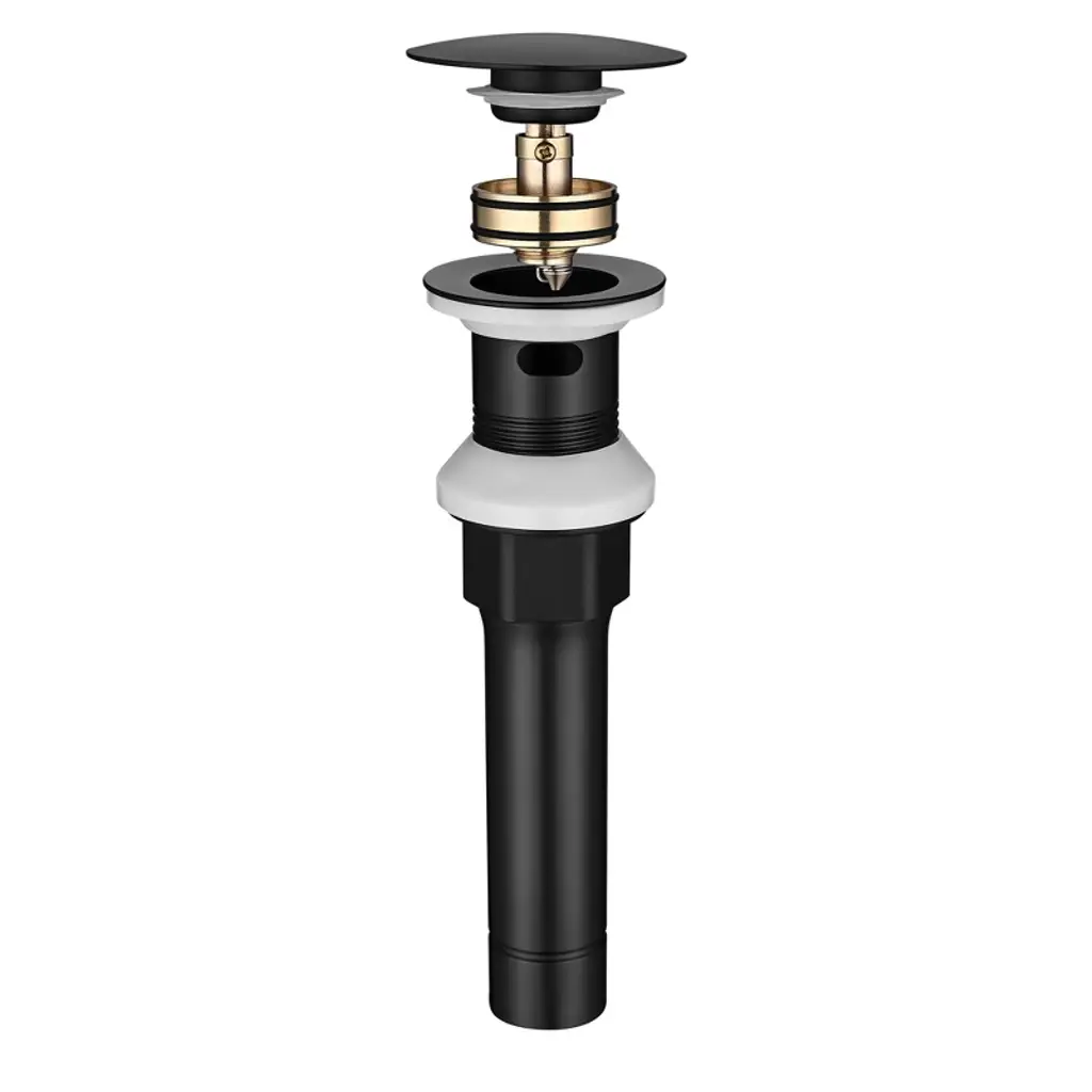 Features:- Pop up Drain - Aquaterior Chrome Pop up Drain with overflow features spring-loaded pop-up stopper which opens and closes by simply pressing the top for rapid discharge and sealing; Fits 1 7/16" to 2 5/16" sink drain holes and 1" to 2 3/4" thickness sink deck, suitable for tabletop or under-mount sinks with overflow while its matte black surface perfectly matching your industrial style decor- Durable & Anti-leakage - Made of thickened stainless steel with matte black finish, the drain boosts its high impact strength and corrosion resistance; Thread design and 2 thickened silicone gaskets for ensuring even upper shift during the installation, meanwhile creating a tight seal between the sink and drain body for enhanced leakage proofing- Reduces Clogging - Comes with an anti-clogging basket strainer inside for preventing hair and dirt from clogging the drain, also keeping valuables like earrings and necklaces from washing down the drain- Tool-free Installation - Features integrated design and unique large hexagonal nut to easily screw and fasten the drain without any tools, easy to clean by taking out anti-clogging basket strainer and washing- Brand Service - Aquaterior provides a 5-year warranty brand service for any quality issues so you can enjoy worry-free usage for years to come; If you have any problem with the pop-up drain, feel free to reach out to usSpecifications:- Overall Dimension(Dia.xH): 2 5/8" x 8 7/16" (6.6 x 21.5 cm)- Fits Sink Hole Diameter: 1 7/16" to 2 5/16" (36 to 59 mm)- Fits Deck Thickness: 1" to 2 3/4" (25 to 70 mm)- Top of Drain Diameter: 2 5/8" (6.6 cm)- Height of Thread: 1 3/4" (4.5 cm)- Pipe Length: 4 15/16" (12.5 cm)- Material: Stainless Steel- Net Weight: 0.86 Lb (0.39 kg)Package Contents:- 1x Pop-up Drain