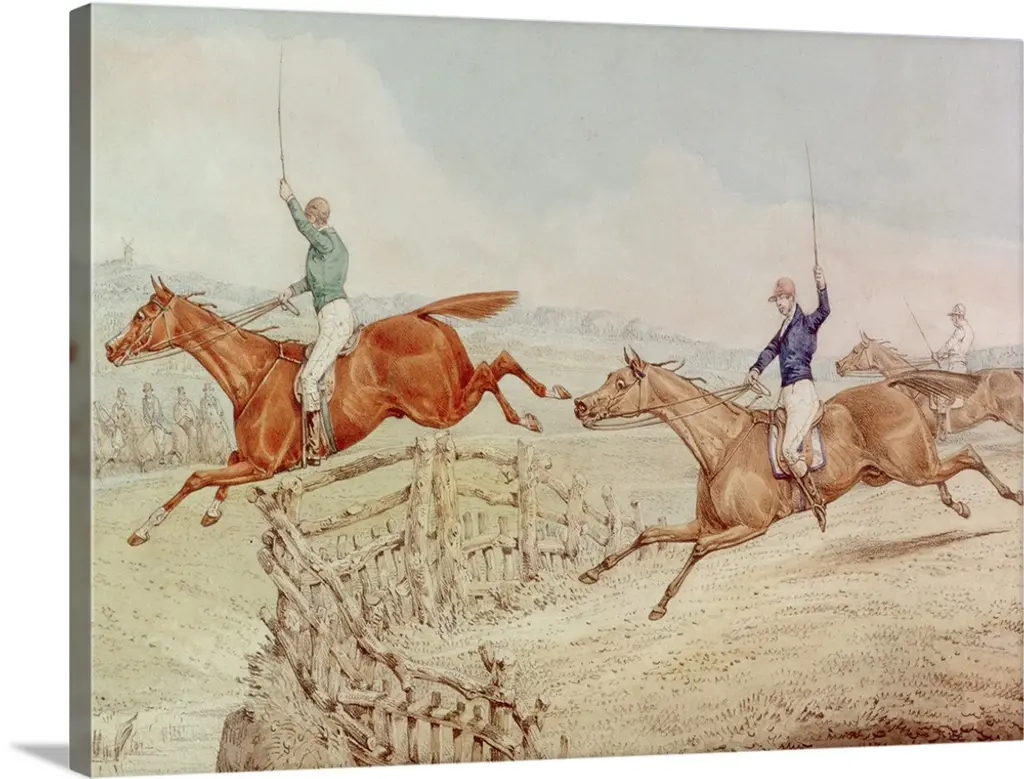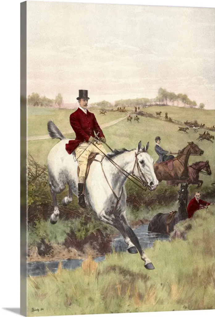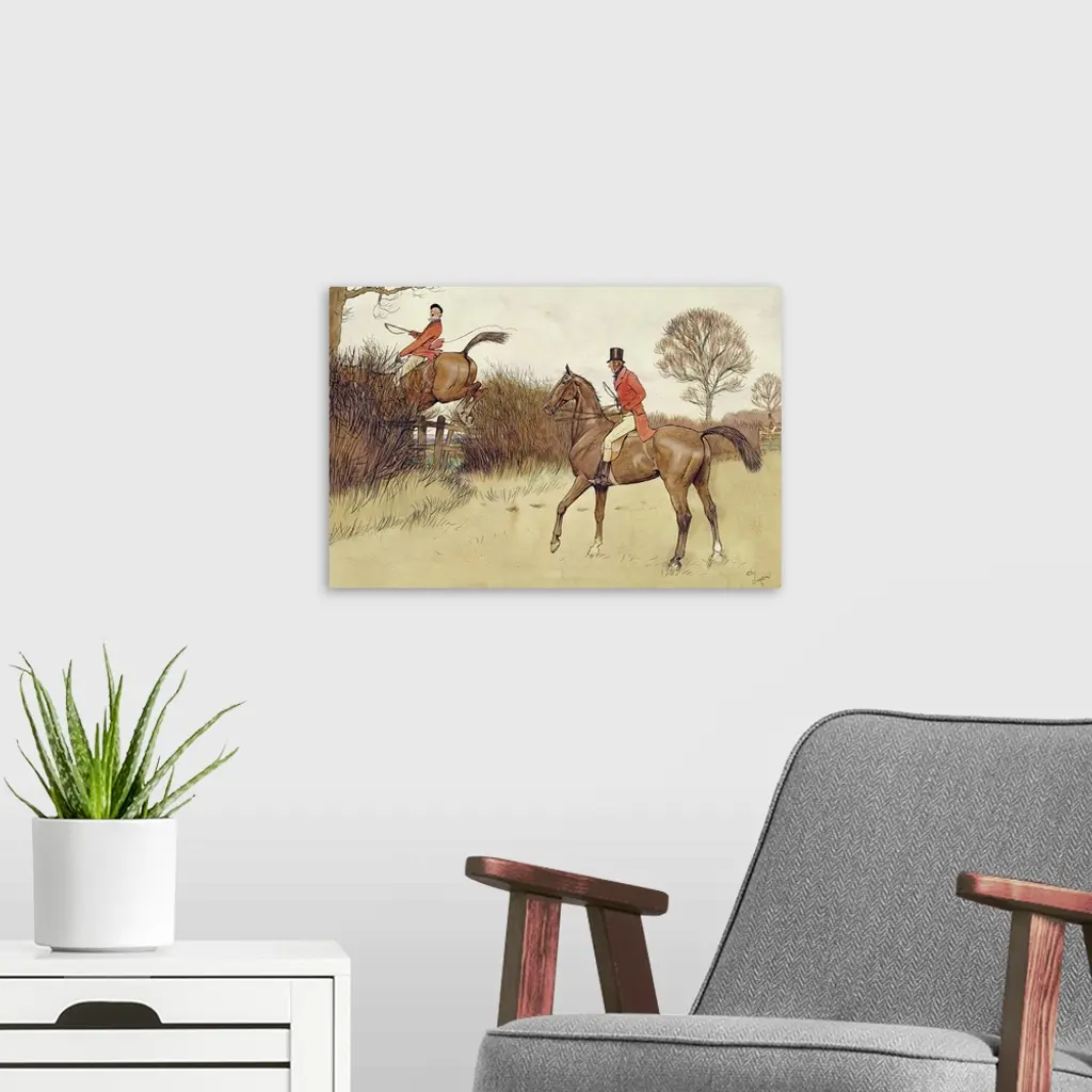 Hunting scene in graphite, pen and ink, and watercolor on paper.