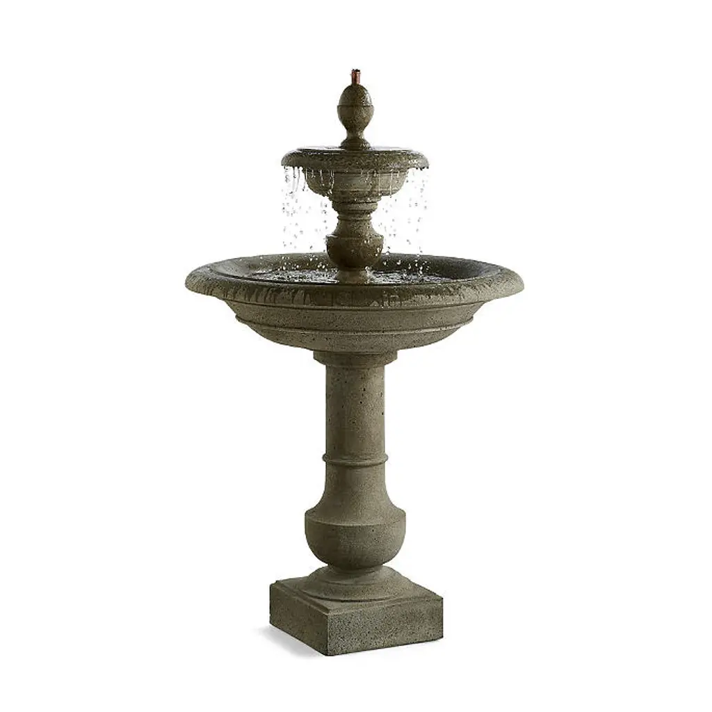Crafted from stonecast in a gray stone patina finish, the stately two-tiered Arabella Fountain makes for a show-stopping outdoor addition. 100% stonecast Gray stone finish 72" cord Circulates 140 gallons of water Pump included Assembly required Made in USA A Frontgate exclusive. At Frontgate, our primary focus is quality. We guarantee that every product we sell will stand up to the supreme test – our customers' satisfaction. To learn more about our policies, visit our Shipping & Processing, Returns & Exchanges and Warranty & Price Guarantee pages.