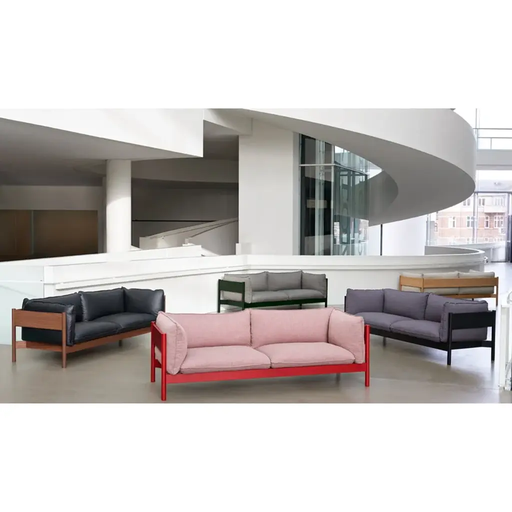 The Arbor Eco sofa by HAY is the result of a collaboration between Andreas Engesvik and Daniel Rybakken. The sofa’s clear and streamlined design follows the ideals of Nordic design, with the frame left exposed, giving the sofa an architectural look and creating a contrast to the plush cushions. Unlike with most sofas, the cushions resting against the armrests are the same size as the backrest cushions, so that it is easier to lounge on the sofa just the way you prefer. In keeping with the Scandinavian design tradition, the Norwegian designers opted for honest, high-quality materials: the sofa frame is made of sustainable wood, and the cushions are filled with Oeko-Tex certified foam and upholstered in eco-labeled textiles. If, over the years, one of the parts needs to be renewed, it is possible to repair or change it separately without having to replace the entire sofa. Thanks to the ecological design, the sofa has been awarded the Nordic Swan Ecolabel.