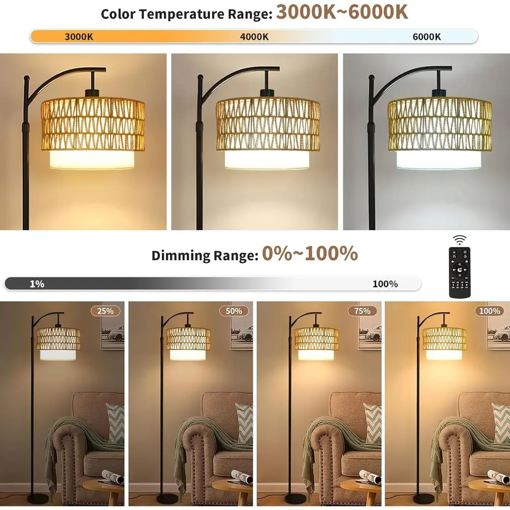 Arc Floor Lamp With Table And Shelves - Double-Deck - 11.9 Inch