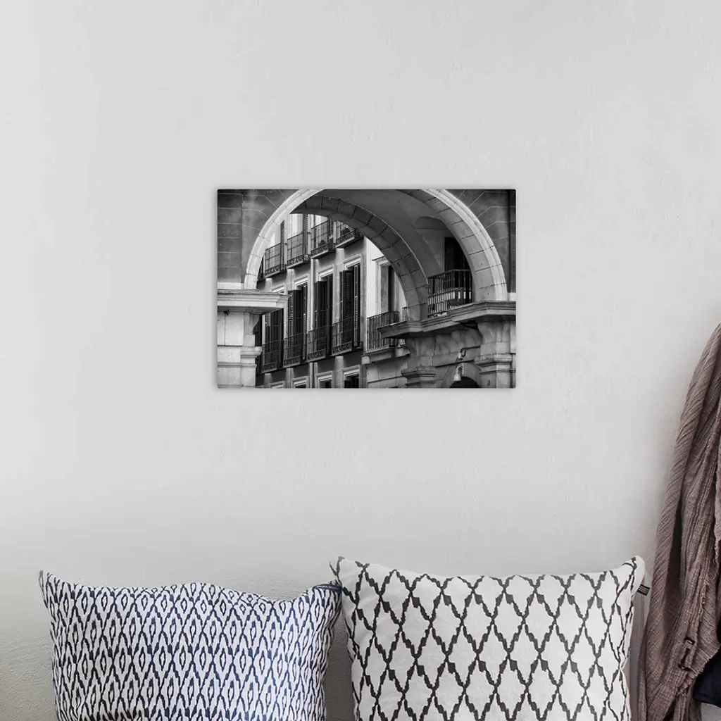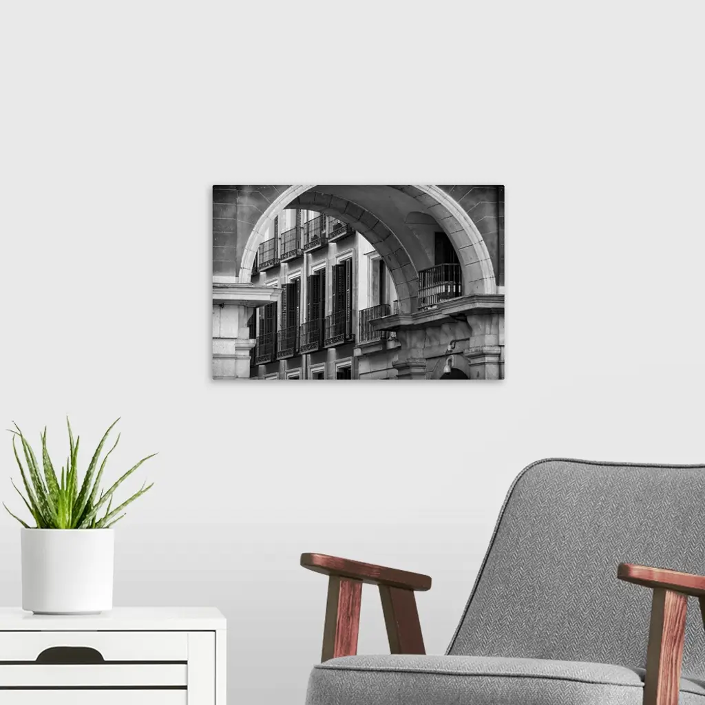 Balconies and Windows with Shutters Viewed through an Arch of Spain