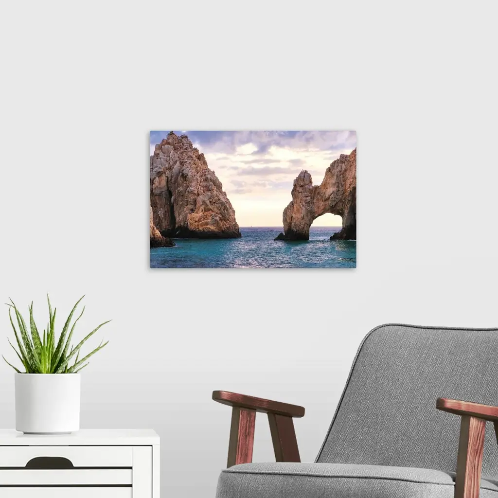 View of the Arch of Cabo San Lucas in late afternoon light, Baja California Sur, Mexico.