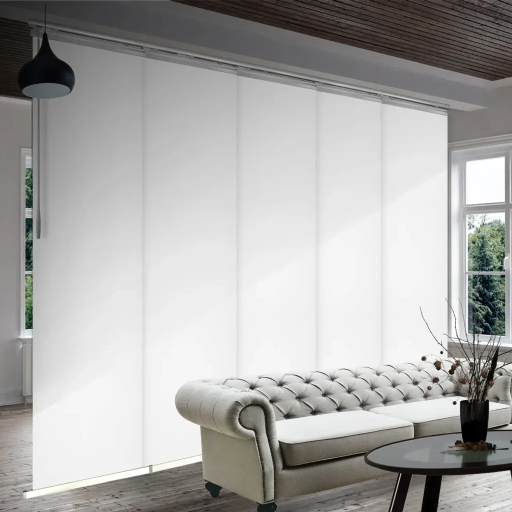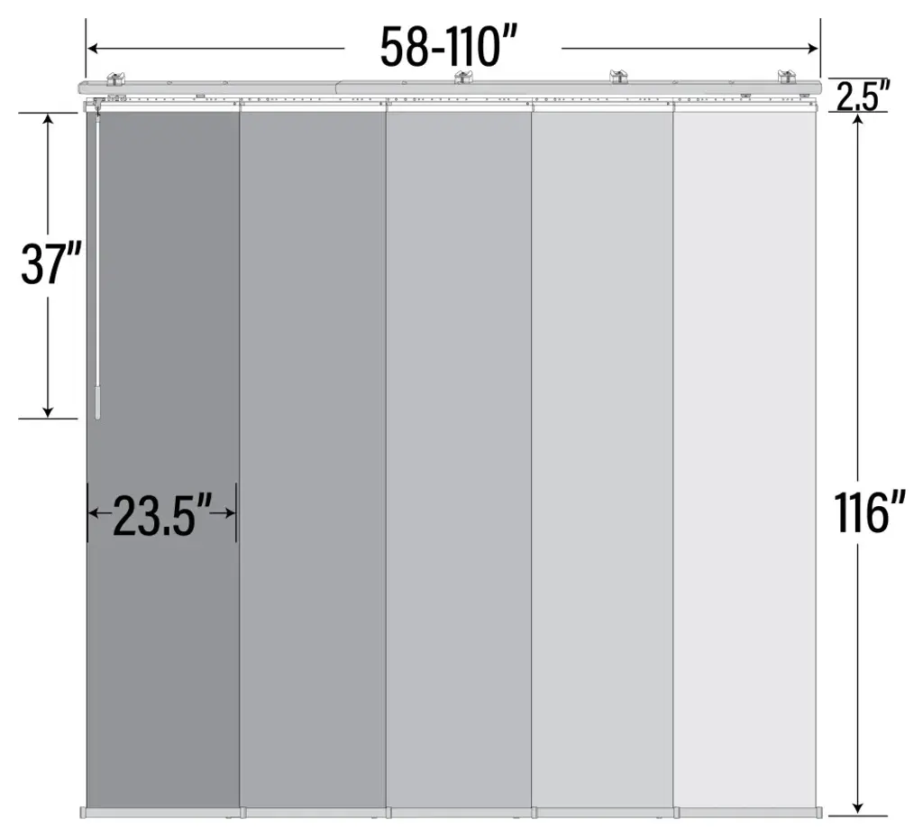 Central Design Products is pleased to introduce a new innovative panel track that offers easy 2-way installation, adding an alluring style and refined touch to your home decor. The single rail design of the track is sleek, compact, and reduces the overall footprint and weight of the installation, eliminating bulky, intrusive window treatments. Adjusting the panel height is a breeze � simply trim the panel, re-attach the liner, and install the panel weight. Detailed instructions are included.The panel track also features a patented slider design, made with aluminum and fitted with bearings that allow for durable and smooth operation. The sliders are stacked closer together than conventional panel tracks, reducing light bleed coming from the gaps between panels. This track has endless uses from dividing rooms, garages, offices, and closets to decorating windows and patios. Available in larger sizes including 8, 10, and 12 panels. Extends from 58-110� wide. Each panel measures 23.5" wide and 116" tall, with a total installation height of 118.5" (includes the 2.5" rail track). The track can be wall or ceiling mounted. The panels can stack on the left or the right. The clearance from the wall is extendable from 1.25� to 3.25� and projection from the wall is extendable from 3� to 4.25�. Archard panel is made from 70% Polyester 30% Acrylic, with a blackout shade.
