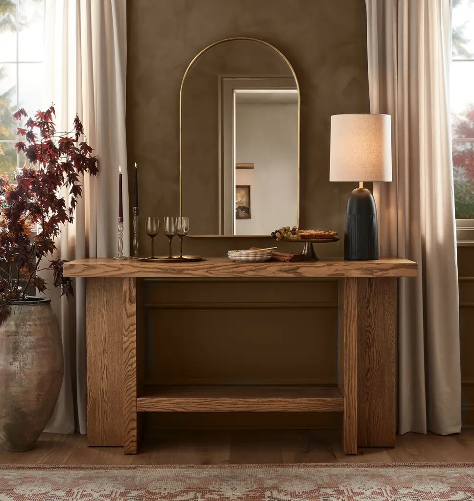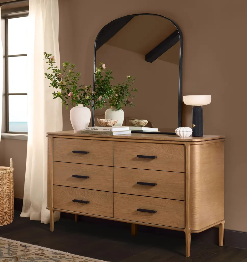 A timeless addition above any dresser, vanity, or in the entryway, our Arched Metal Framed Mirror features a sleek brass metal frame, classic arched silhouette, and is available in an array of finishes.