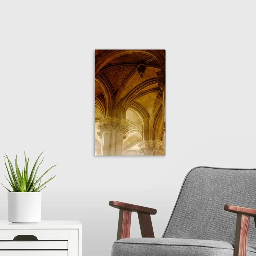 Elaborate architecture in Saint Eustache cathedral in Paris.