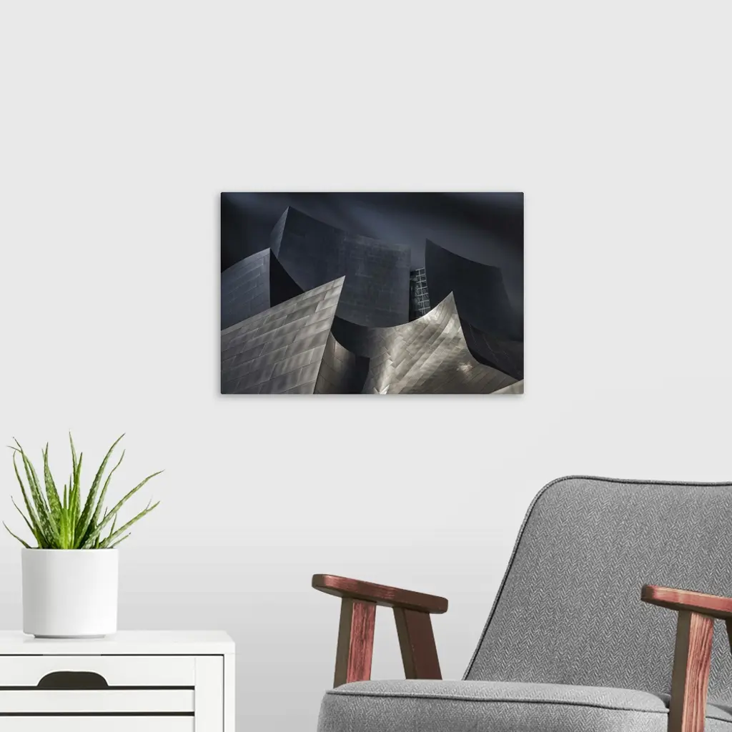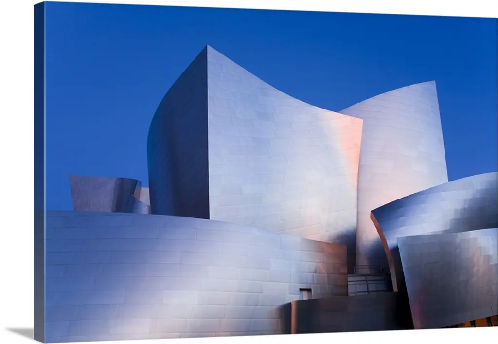 The unusual curves and angles of the Walt Disney Concert Hall in Los Angeles.