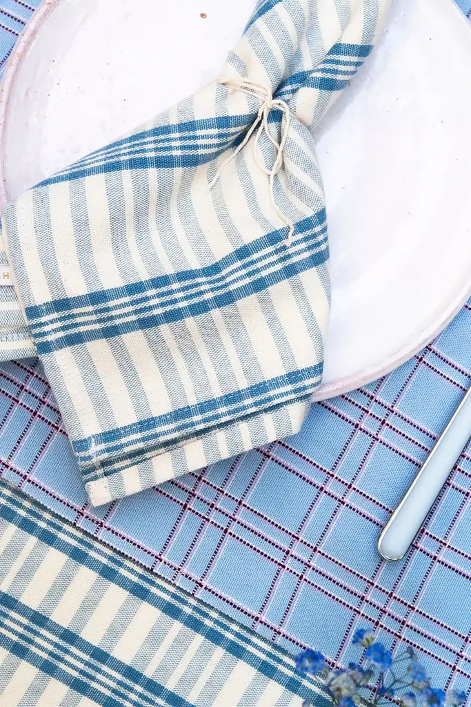 Natural Indigo and ivory cotton table runner, ethically handwoven by artisans in Totonicapan, Guatemala on traditional footlooms. Hand dyed using natural indigo dyes on super soft natural white cotton. This updated classic plaid will be a lively addition to your kitchen or dining table.* Handwoven cotton* Dyed with natural plant dyes* Hand wash cold, lay flat or line dry* Imported#### *Dimensions** 16" x 71" including fringe