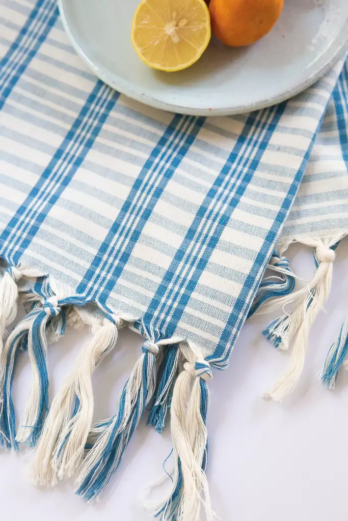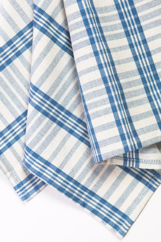 Natural Indigo and ivory cotton kitchen towel, ethically handwoven by artisans in Totonicapan, Guatemala on traditional footlooms. Hand dyed using natural indigo dyes on super soft natural ivory cotton.Archive New York is a line of handwoven, artisan made home decor products, founded in 2014 in Brooklyn, NY. The founder, Amira Marion, grew up in a home filled with Guatemalan textiles gathered by her parents in the 1970s. Her own designs emphasize a deep connection with Central American artisans, a commitment to Fair Trade practices, and the honoring of Maya culture, heritage and technique.* Dyed with natural plant dyes* Handwoven cotton* Machine wash cold, tumble dry low* Imported#### *Dimensions** 20" x 28"