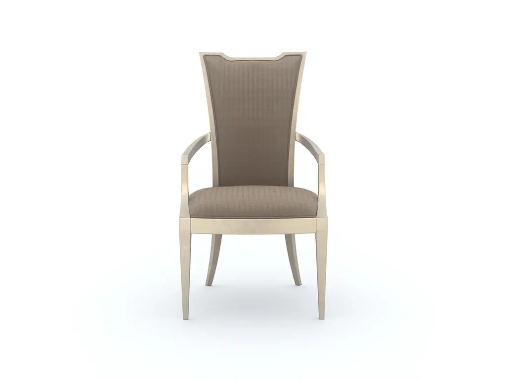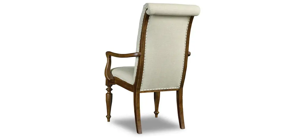With a world-traveled pedigree, designer details and exquisite comfort come together in the Archivist Arm Chair to create a versatile chair of inviting elegance. From the roll-top back to the shaped goose-neck arms to the carved legs to the upholstered tack trim around the seat and back, the Archivist Arm Chair will welcome guests to linger around the table or in the family room as an extra seating option. The soft casual finish over rustic Pecky Pecan veneers contrasts beautifully with the neutral colored Aubergine Linen fabric on the seat and back.