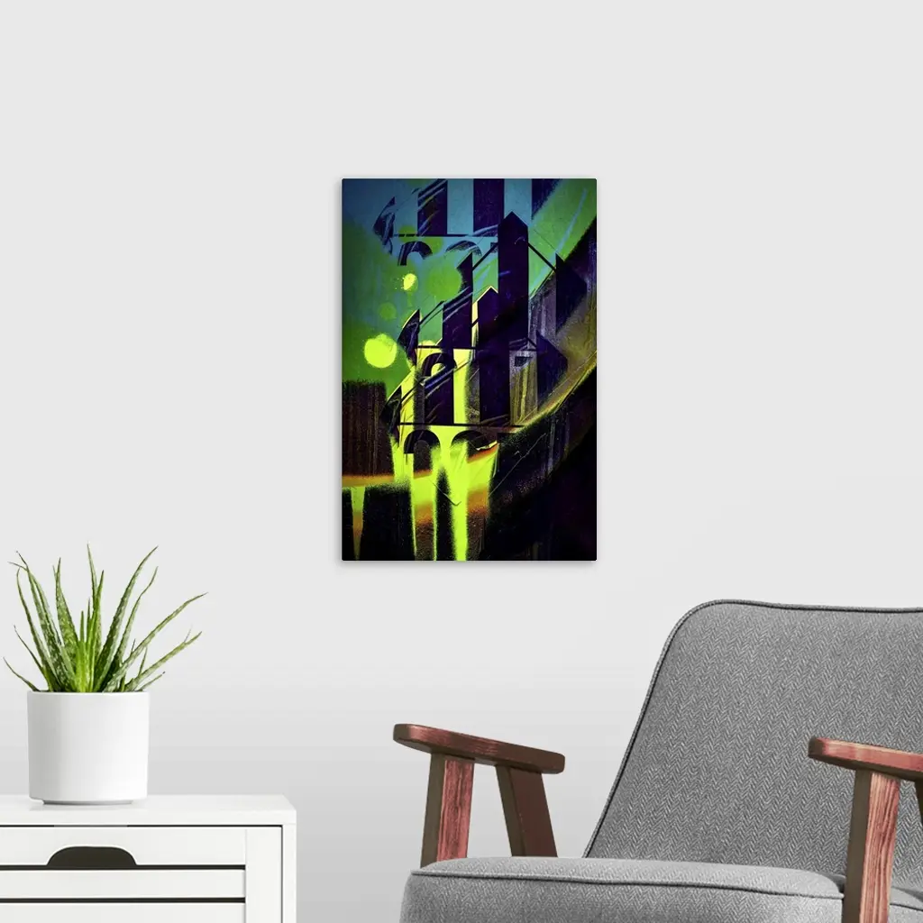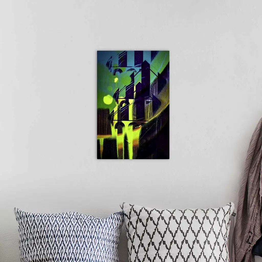Multi-exposure closeup of graffiti on the black side of a train car, the image reminds of archways leading to a city, possibly on a hill. It allows the viewer to use their imagination. Ursula Abresch Graffiti Collection