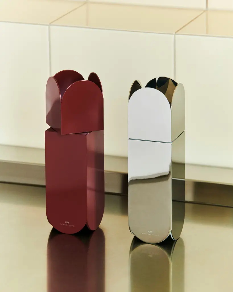 Great taste meets good design with the Arcs Salt & Pepper Grinder, by Muller van Severen for HAY. Its distinctive silhouette features vertical arcs that create a striking geometric form, making it as visually appealing as it is functional in use. The sleek stainless steel exterior ensures lasting durability, while a precise, internal ceramic mechanism delivers a consistent grinding every time. Made in China.