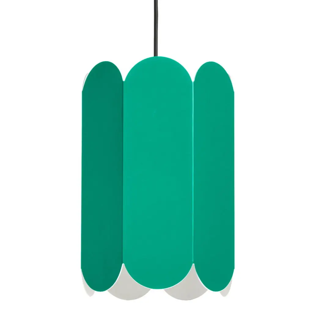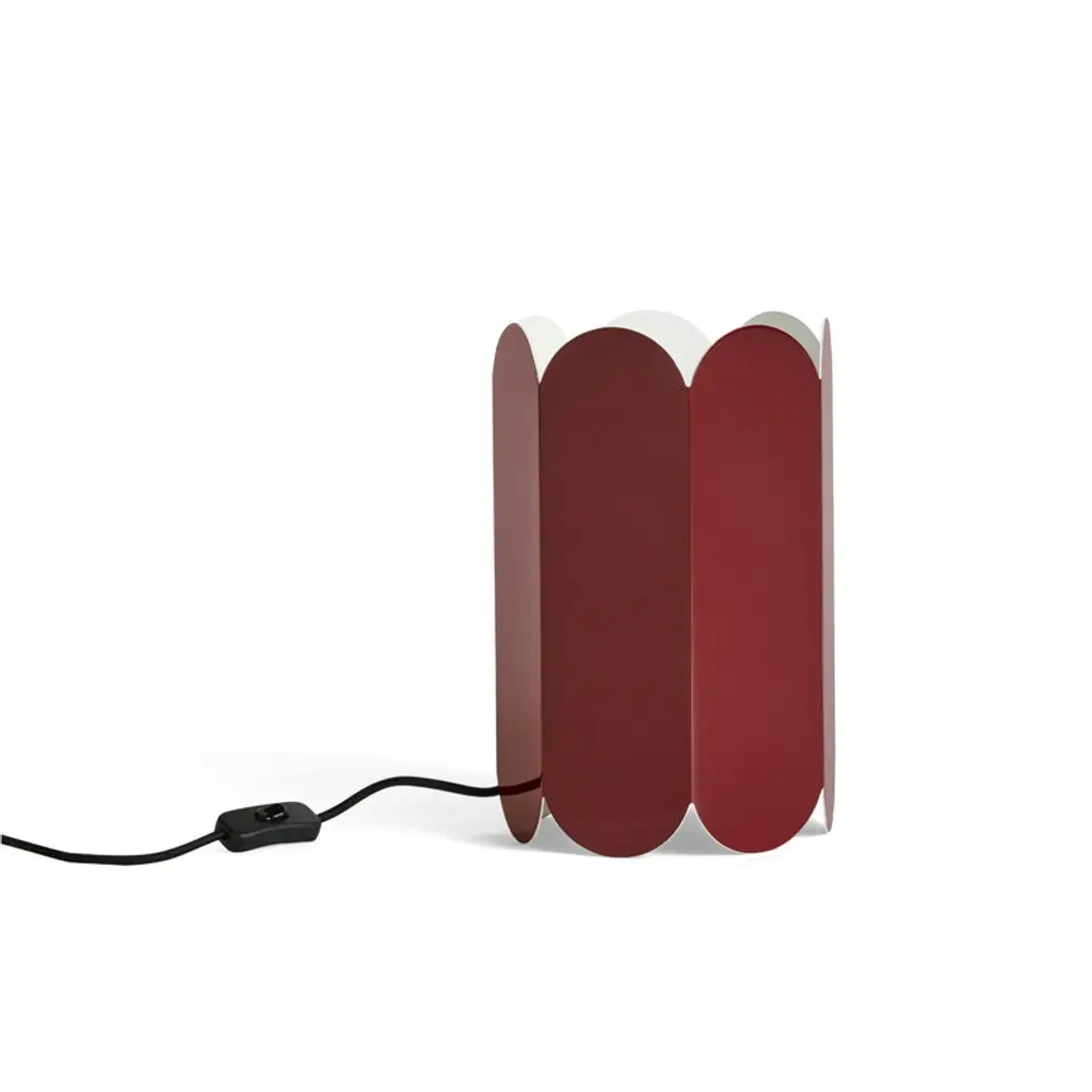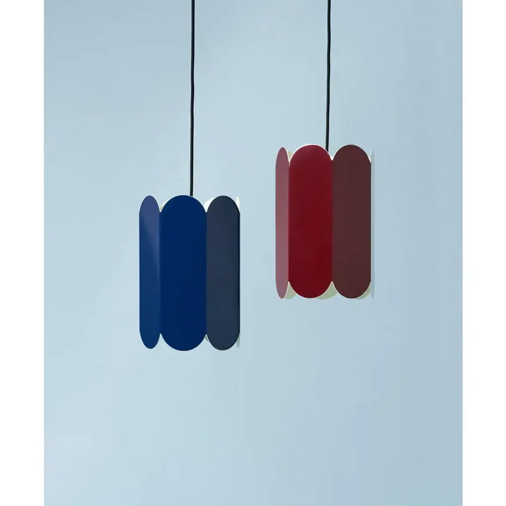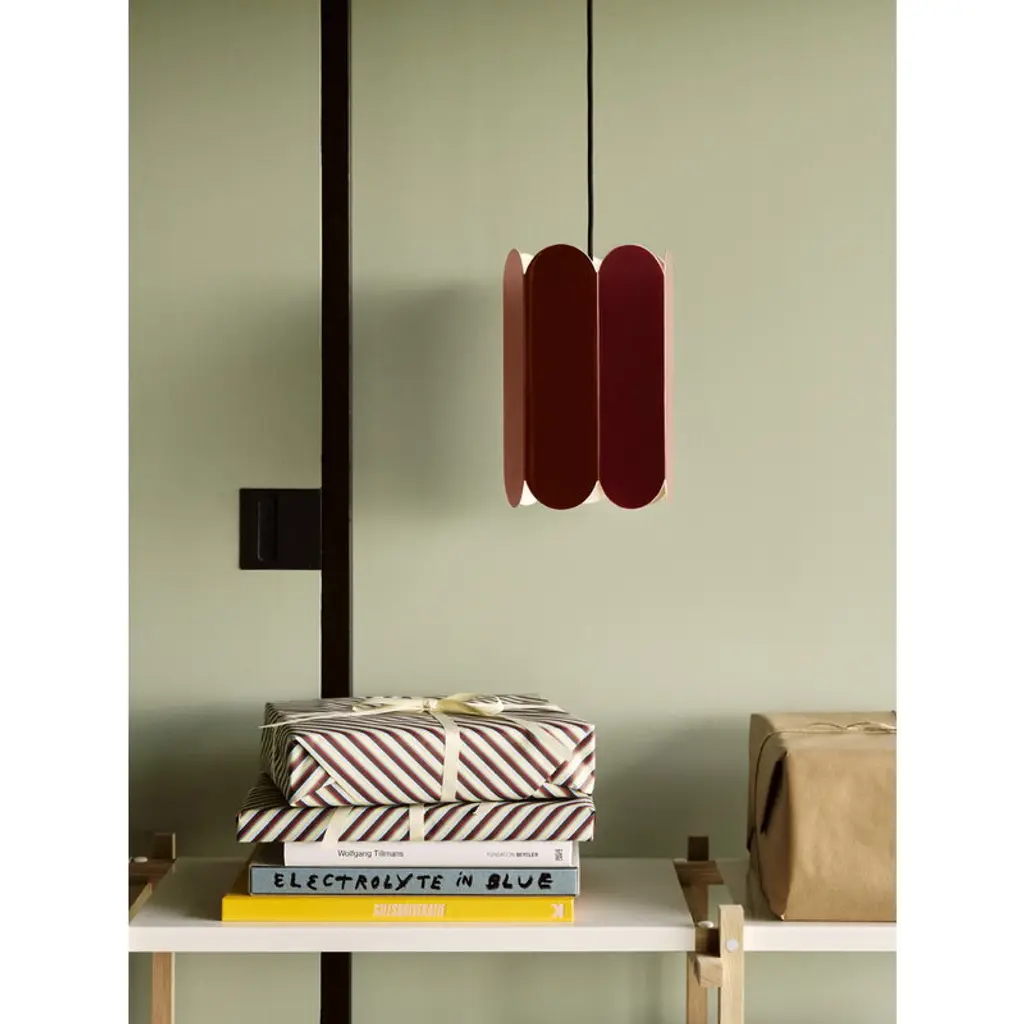 HAY's Arcs shade acts as both a table lamp and a pendant lamp suspended from the ceiling and creates a soft play of light and shadows to the room. The stunning and geometric shade is made of bent sheet metal steel and finished with a high-gloss spray paint. The Arcs lampshade can be made into a pendant or a table lamp – the choice is yours. If you'd like to hang Arcs on the ceiling, pair it with HAY's cord set for ceiling lamps. If you'd prefer a luminaire placed on a table, shelf or windowsill, pair the lampshade with the cord set for table lamps. Both cord sets are available separately. Designed by Muller Van Severen, the Arcs collection is based on simple oval shapes: when joined together, the pieces create captivating silhouettes where soft and straight lines meet. The Arcs series consists of various sizes of candleholders, vases and lighting in a range of finishes. You can create a vibrant yet coherent whole by mixing different colors together.