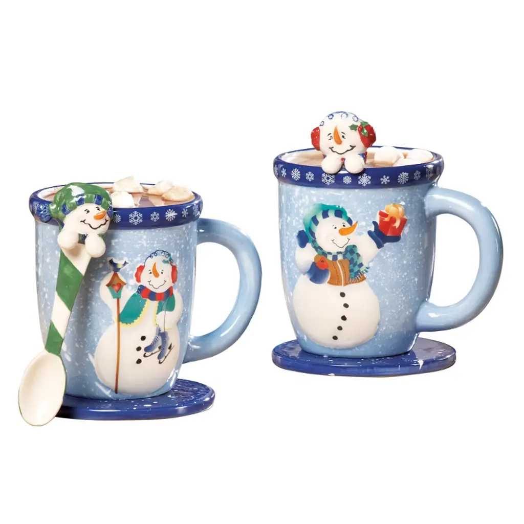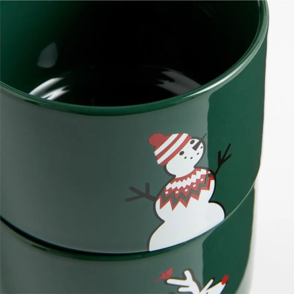 Joan Anderson's delightful holiday characters star on our deep evergreen ramekins. A red-nosed reindeer sports a candy cane-striped scarfand a tiny red bird on its antlerson one, while a snowman is bundled up in a cozy Fair Isle sweater on the other. Hand-glazed by skilled artisans, the two ceramic dishes bake and serve eggnog creme brulee, pot pies or cranberry souffle.For more than 30 years, our exclusive whimsical designs by artist Joan Anderson have been collectible favorites that sell out fast.