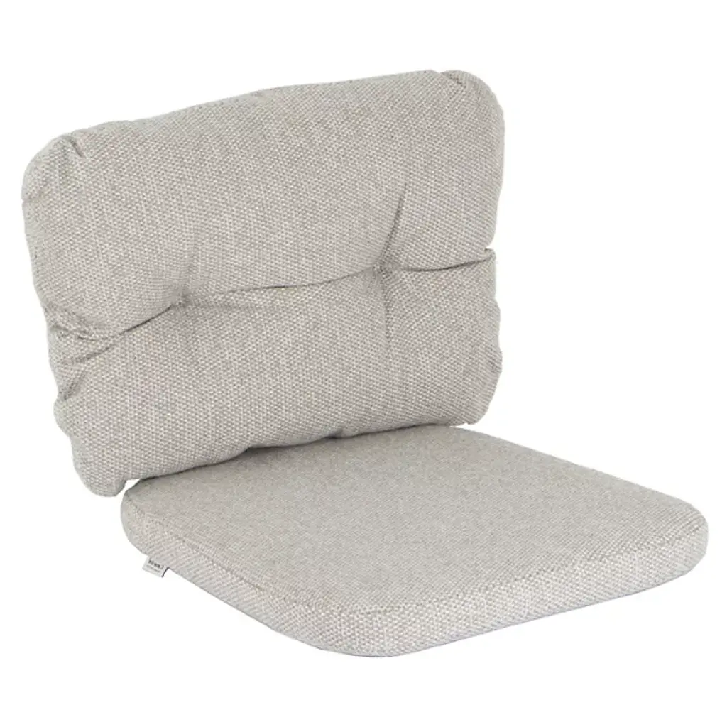 The ARDEN Plush Blowfill Deep Seat Set is made with soft polyfiber fill and long-lasting outdoor polyester fabric with PFAS-Free C0 treatment. Creating an ultra-comfortable outdoor deep seat cushion that is also eco-friendly and skin safe for your family. This outdoor conversation cushion has one pillow that measures 24in W x 18 in L x 7 in T and one seat that measures 24 in W x 24 in H x 5.5 in T. The 100% printed polyester outdoor fabric resists fading, so your patio cushion looks vibrant for longer. Skin-safe C0 water protection helps your dining cushion withstand continued outdoor use, while easy cleaning with just soap and water for low-maintenance upkeep. Two sets of ties on the seat bottom make sure your outdoor deep seat cushion stays firmly in place. This set includes a banded pillow back and a seat with 4 tufts to add a decorative touch. Inside this outdoor deep seat cushion set is 100% polyfiber blowfill to help it retain shape and provide long-lasting comfort during outdoor use. Made from 100% recycled plastic bottles, the polyfiber fill provides an environmentally friendly and durable option for your backyard patio. Although this deep seat cushion set is both water and UV-resistant, we recommend bringing it indoors when it rains or when not in use to preserve its lifespan and keep it looking beautiful.
