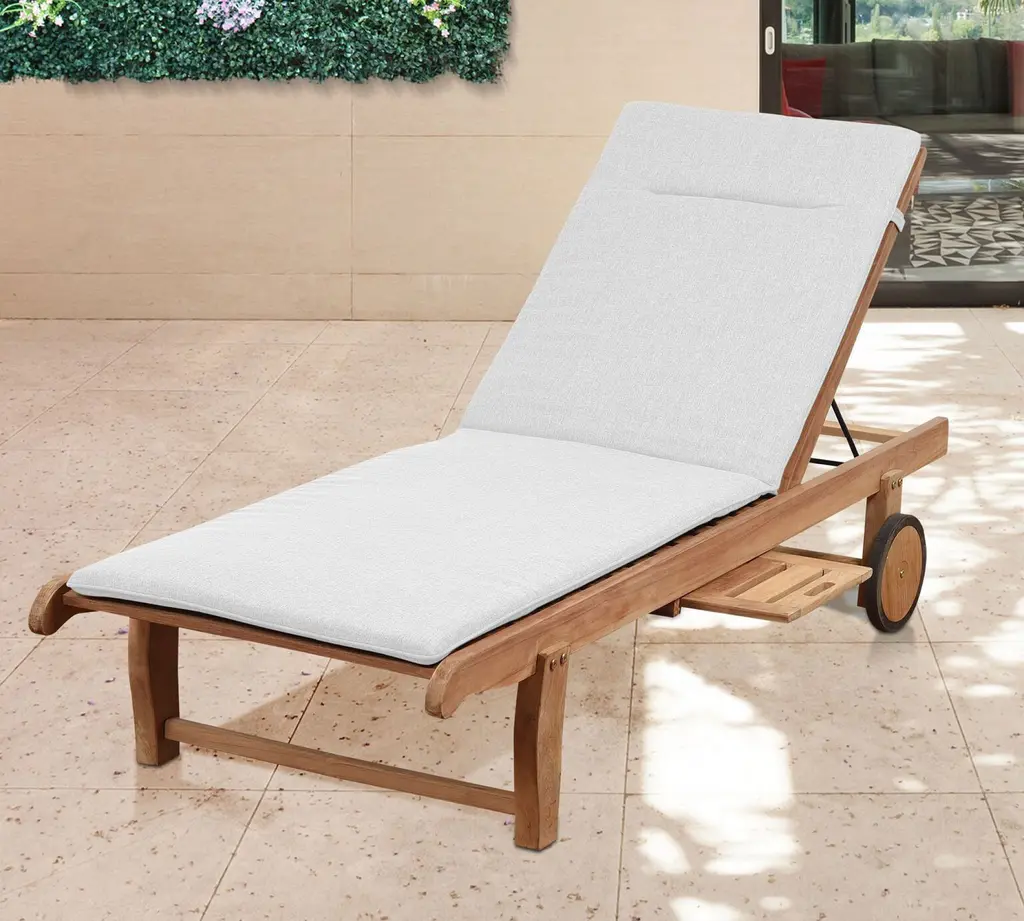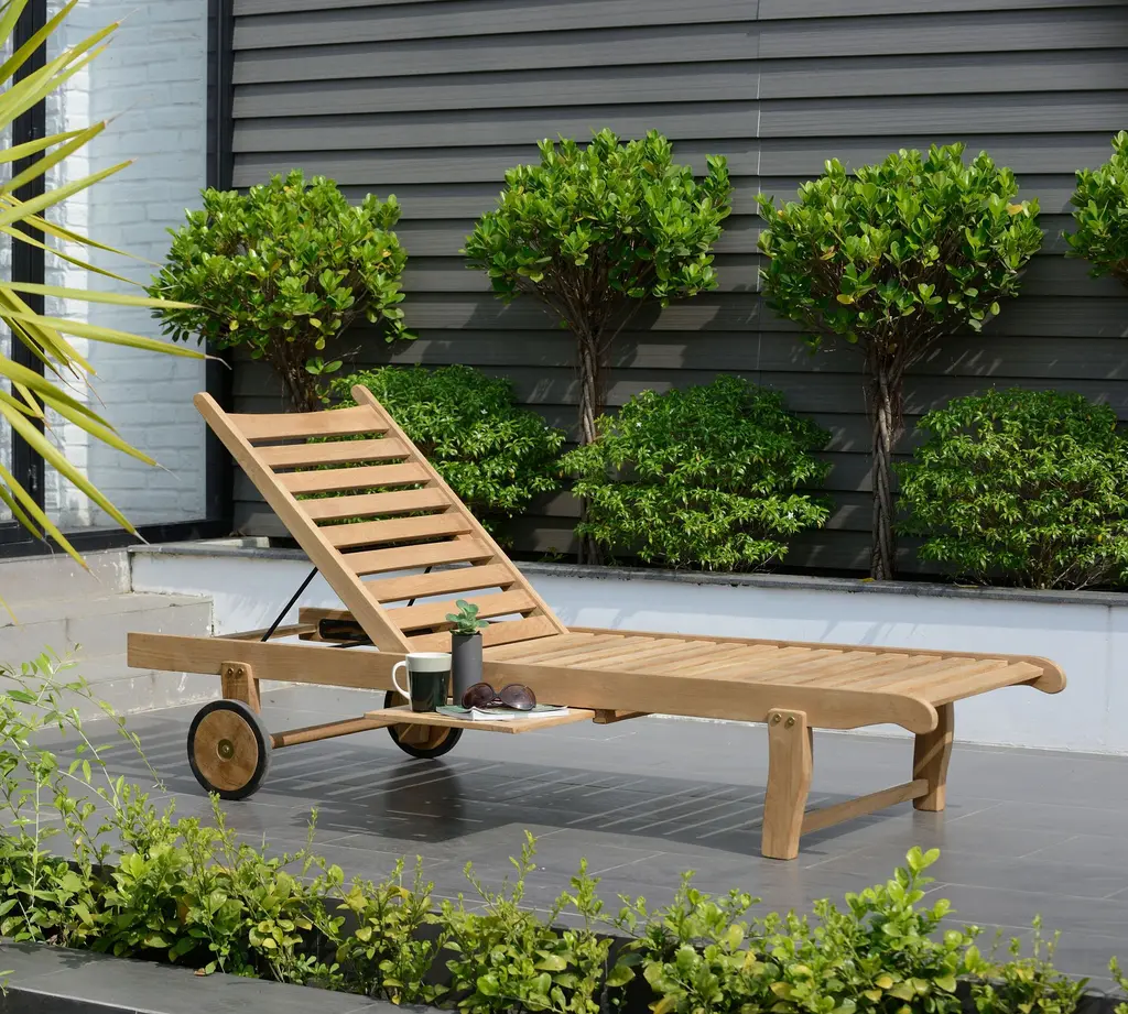 Ardine Teak Outdoor Single Chaise Lounge With Wheels