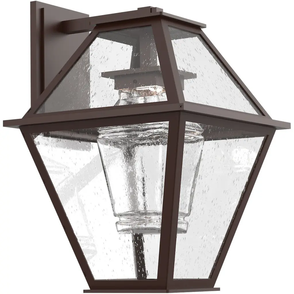 Argyle's outdoor wall lantern showcases a lodge-inspired design that brings a distinctive look to your curb-appeal. This fixture features a crisscross pattern, a beautiful Weathered Zinc finish and clear seeded glass. When creating an aesthetic atmosphere, nothing compares to Argyle.