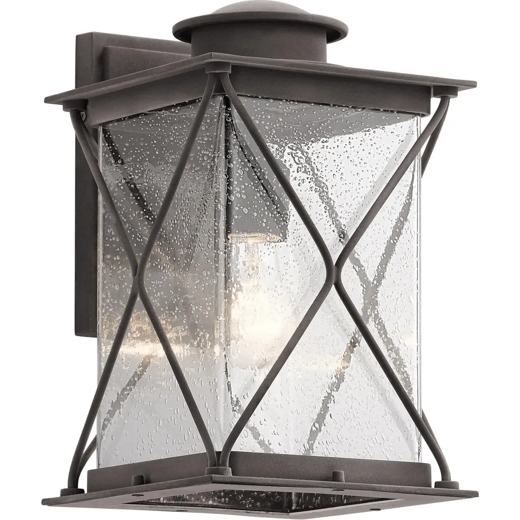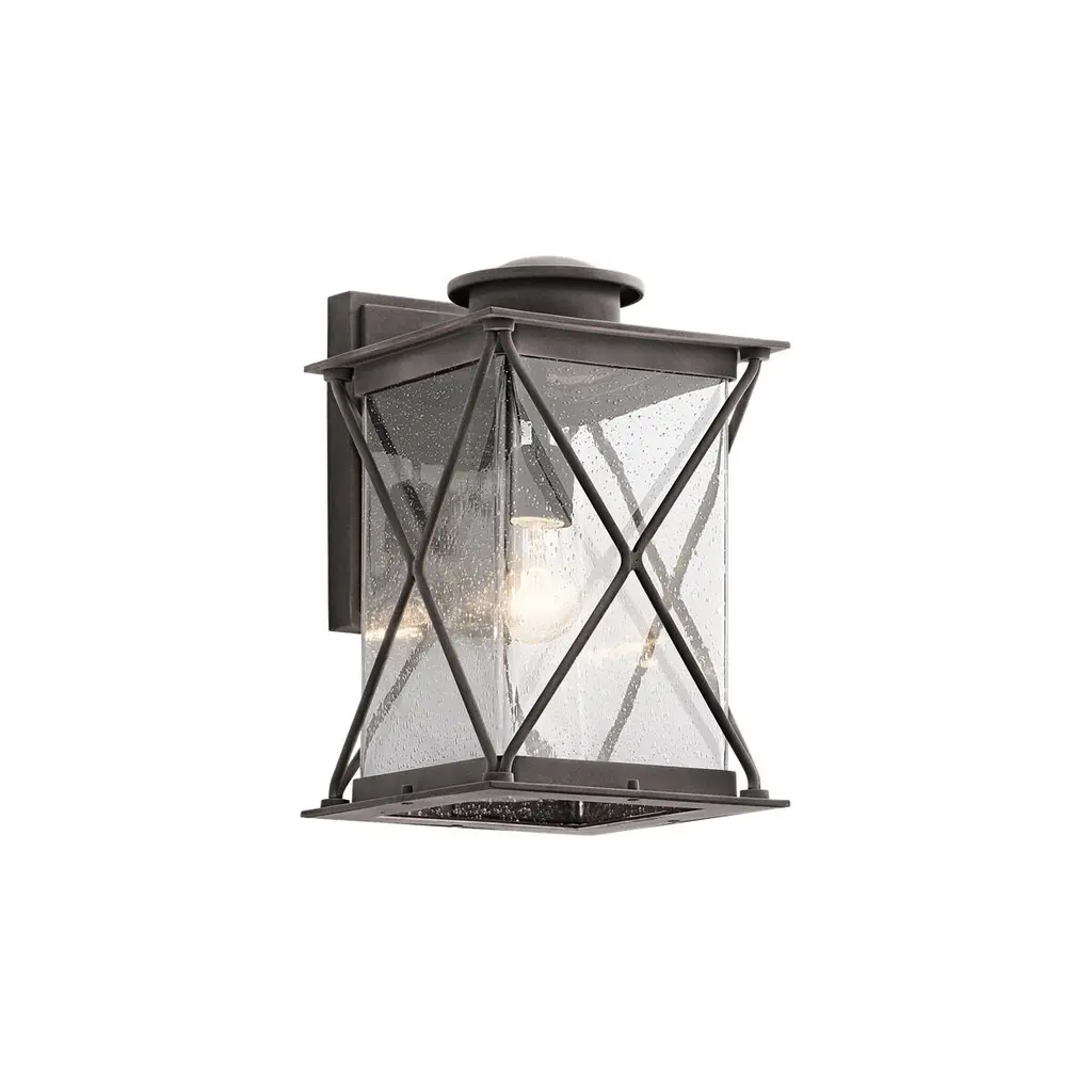 Argyle's outdoor wall lantern showcases a lodge-inspired design that brings a distinctive look to your curb-appeal. This fixture features a crisscross pattern, a beautiful Weathered Zinc finish and clear seeded glass. When creating an aesthetic atmosphere, nothing compares to Argyle.