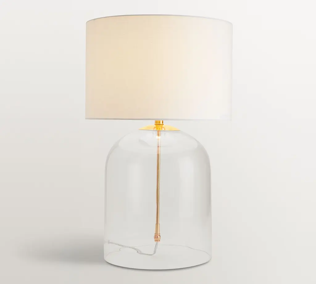 This minimal design maximizes lighting while reflecting its glow. The thick glass dome encloses a center tube in a brass or bronze finish that conceals the cord. Topped with a linen shade, the Aria Dome Table Lamp is an elegant choice for a console, dresser or side table.