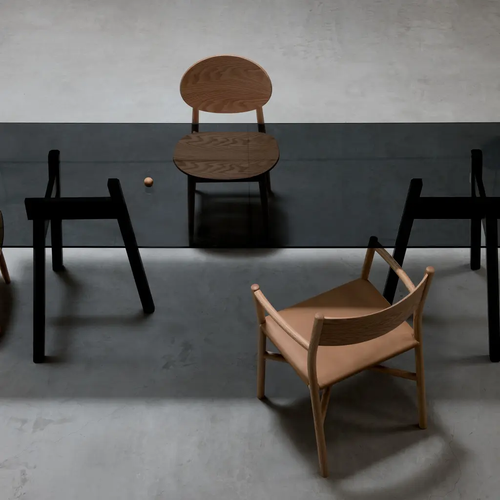 A seat covered in a choice of in-stock buttery leather or fine textile options brings added flair to Ariake’s harmonious structure. Melding hand work and advanced machining. Gabriel Tan’s seating features forthright lines and a comfortably curved backrest, rendered in solid natural oak or stained ash.
