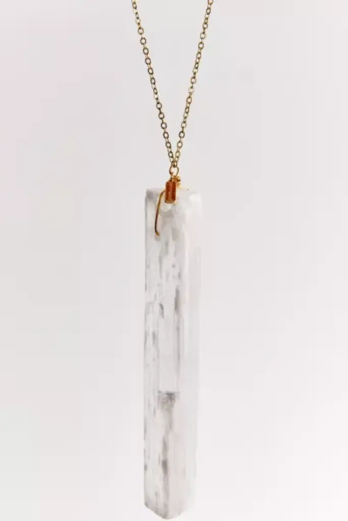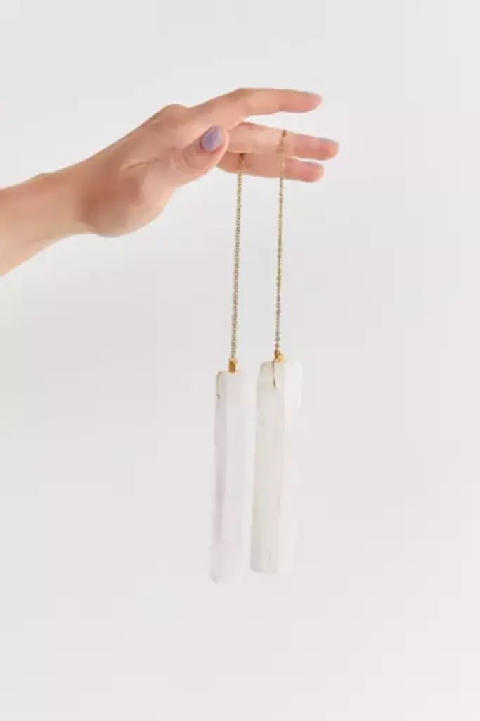 Bring balance and curiosity to your space with this set of two crystal ornaments from Ariana Ost. Each features a selenite crystal that catches that light wherever you hang it, thanks to the delicate metal chain link strand. Due to the handmade construction and raw, natural materials, the crystals you receive will vary slightly from what’s pictured. **Features** \- Ariana Ost Selenite Crystals \- Raw, selenite crystal ornaments \- One-of-a-kind variance from natural materials **Content + Care** \- Set of 2 \- Selenite \- Wipe clean \- Imported **Size** \- Dimensions: approx. 4"l