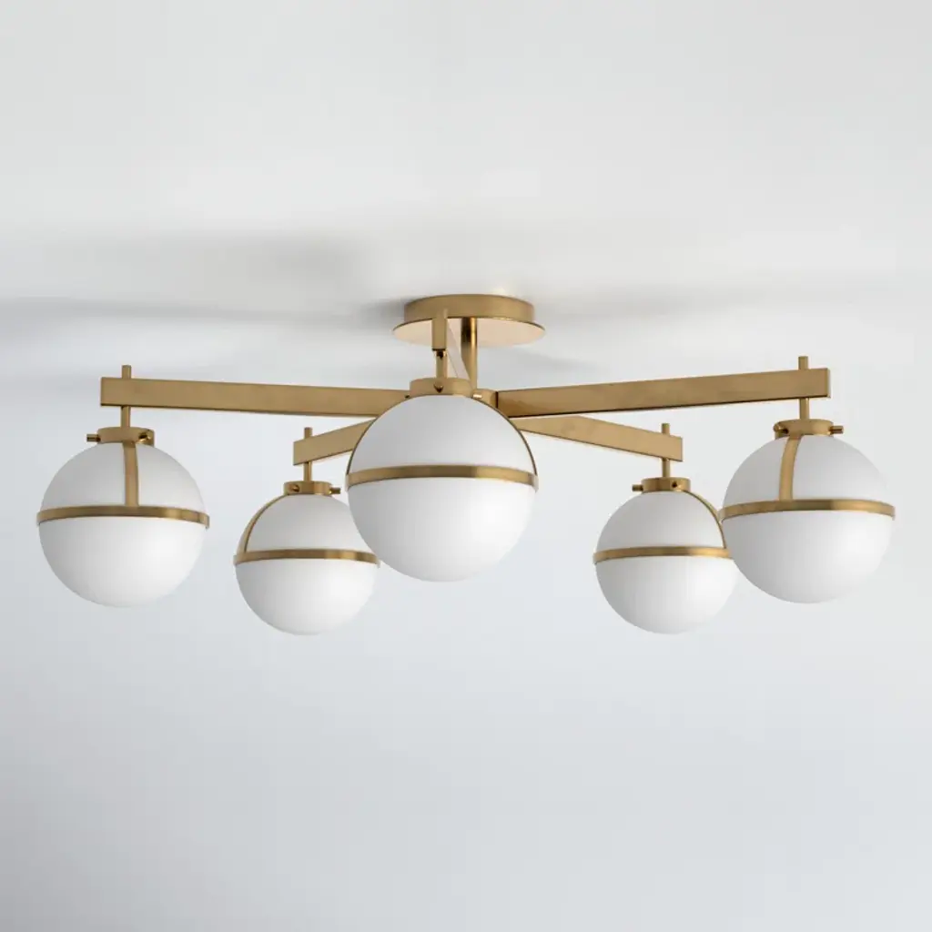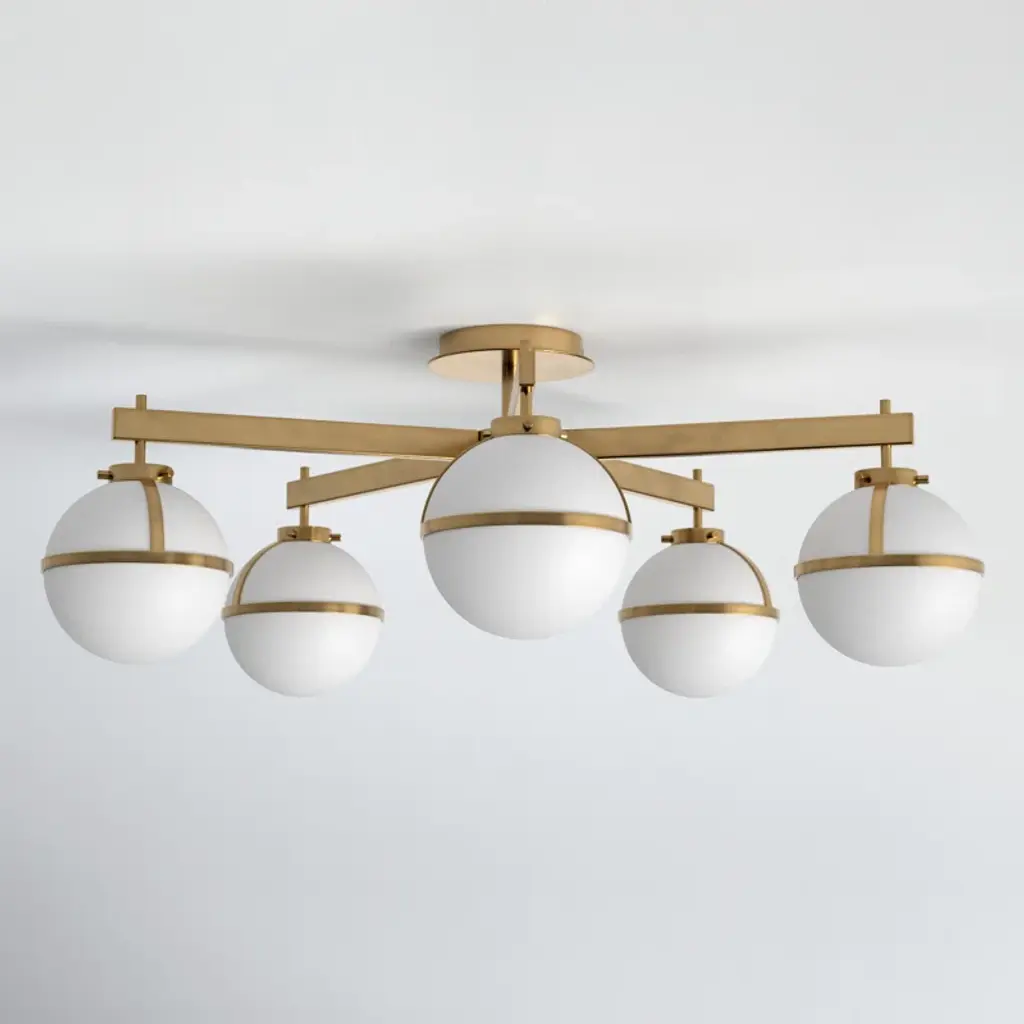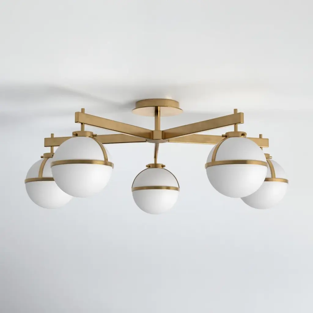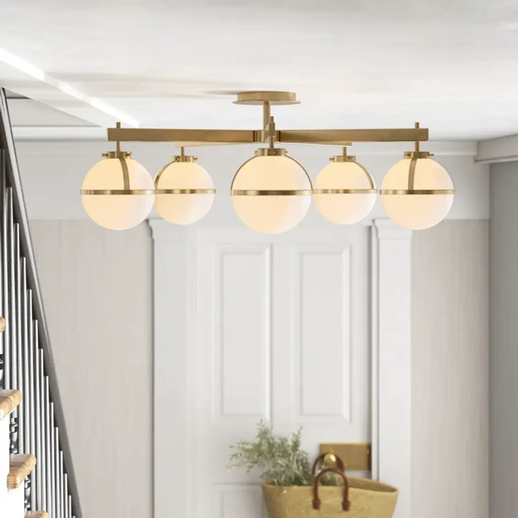 The distinctive vintage globe design invokes a mid-century mood, yet its clean lines and sophisticated silhouette provide versatility for a variety of decors. The extra-large semi flush provides superior lighting for rooms with lower ceilings.
