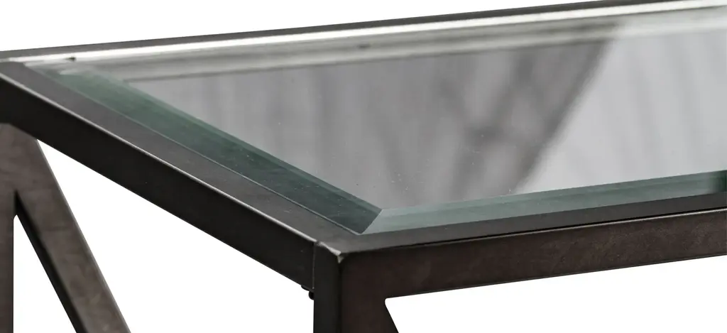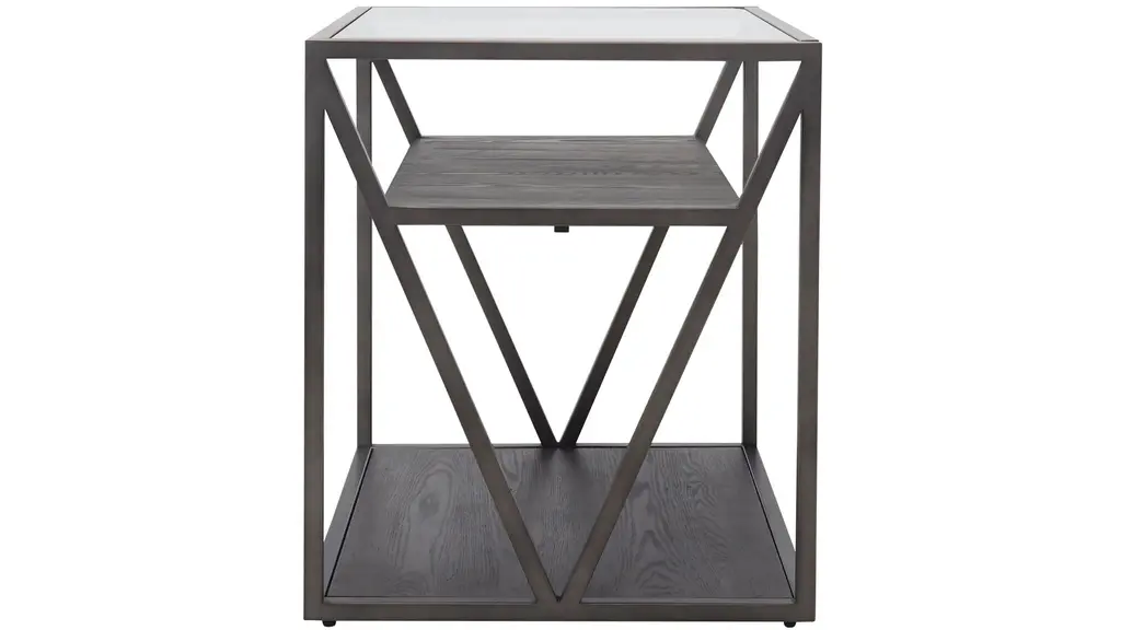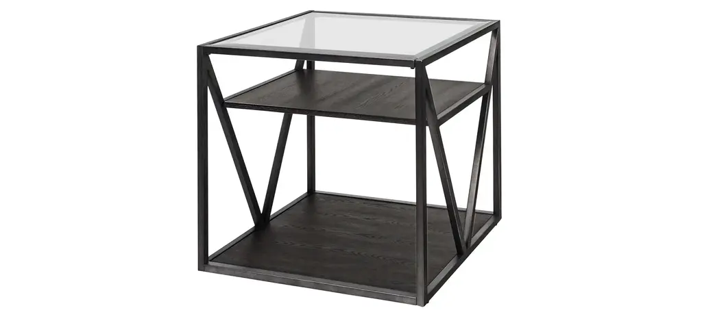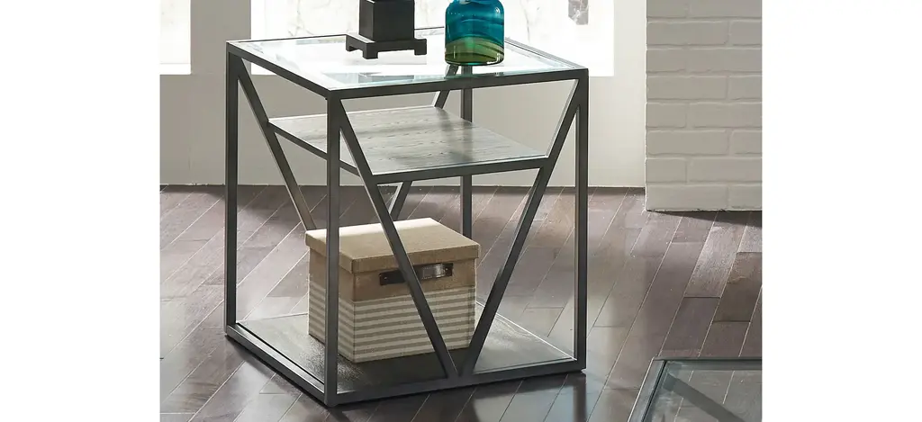 The Arista end table combines metal wood and glass for a striking combination. Glass tops with a beveled edge sit inside a metal frame that v's in the front and ties into a wood shelf. A floating shelf design adds function to the set of tables. Urban living is defined as surrounding oneself in a modern environment, refurbished building or studio/loft. A natural feeling created by the living space as well as the furnishings that attribute to it. The essence of the urban living furniture is its unique ability to fit many different styles-Rustic, casual, contemporary-A mixture of materials with distressed finishes and textured fabrics.