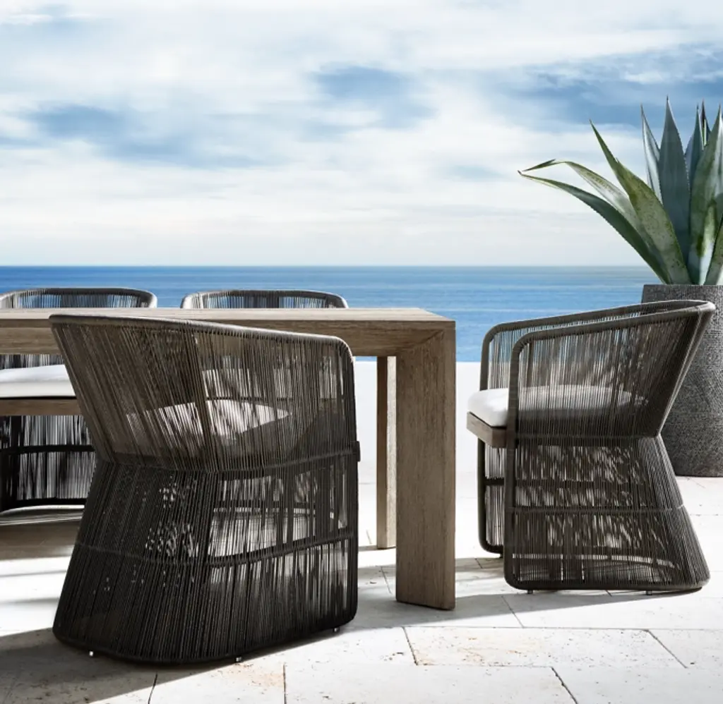 Introduced in Paris in the 1930s, the Parsons table has since become a design classic. Our contemporary interpretation shares the clean lines and even proportions of the original but distinguishes itself through its dramatically angled legs and sturdy construction in durable, weather-resistant teak. Guaranteed for life.