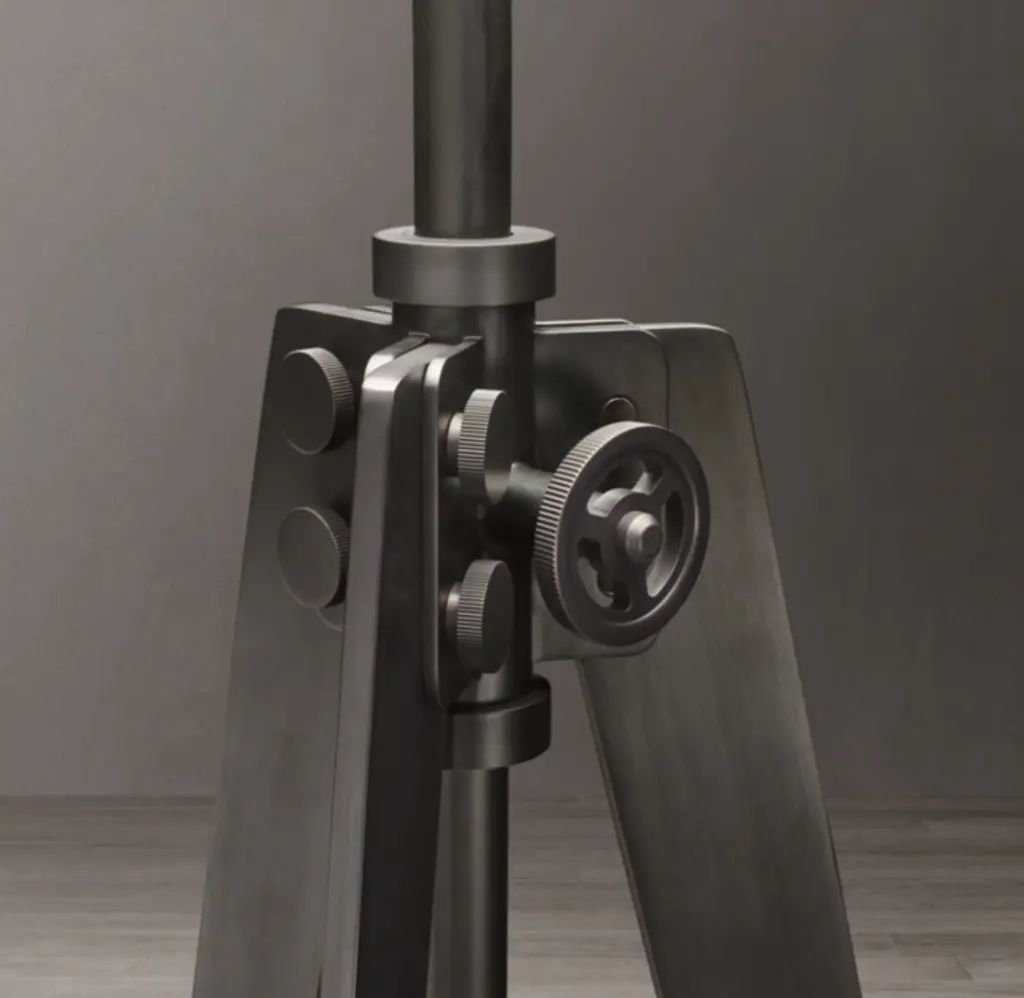 Inspired by early filmmaking equipment, our Armagnac floor lamp evokes the birth of lighting technology. A functional tripod, its gracefully tapered legs adjust from the central column, which articulates to bring light where it's needed. Precision-crafted with diamond-knurled hardware and French wiring, this reductionist adaptation of a classic design highlights both form and utility.