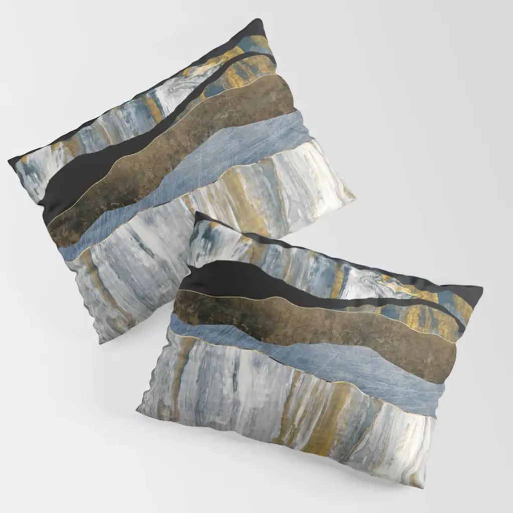 Armor [7]: A Bold Minimal Abstract Mixed Media Piece In Gold, Black And White Pillow Sham