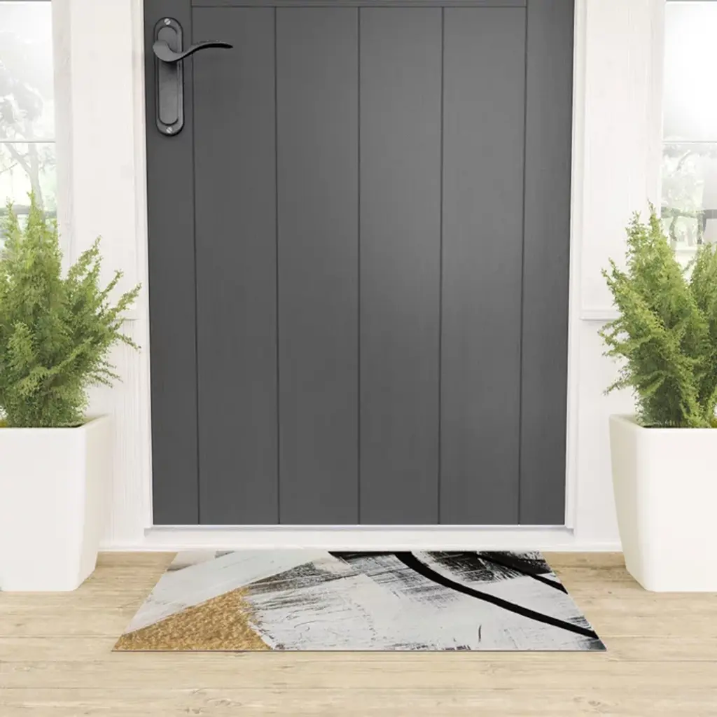 Armor [9]: A Minimal Abstract Piece In Black White And Gold By Alyssa Hamilton Art Welcome Mat