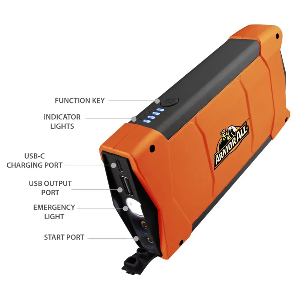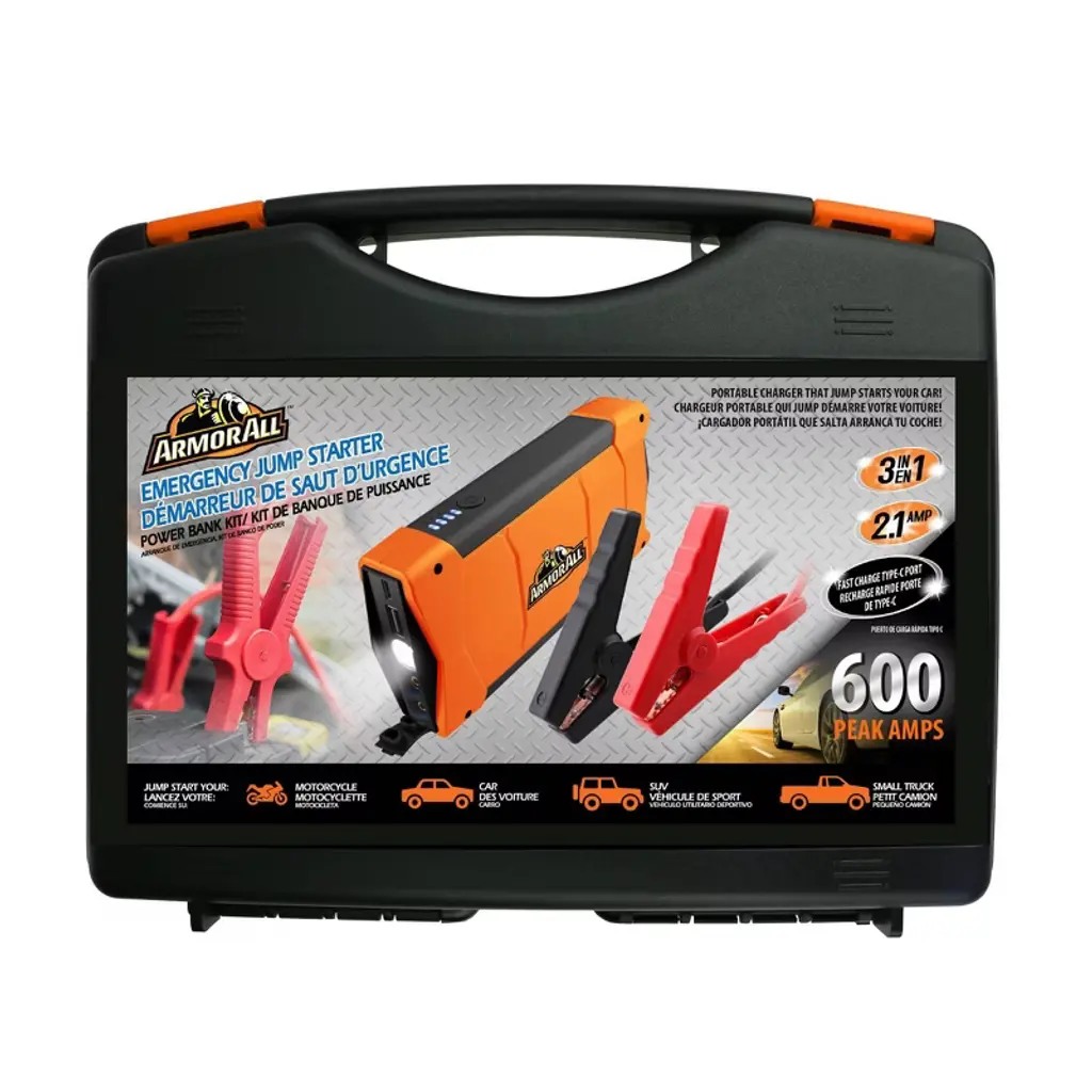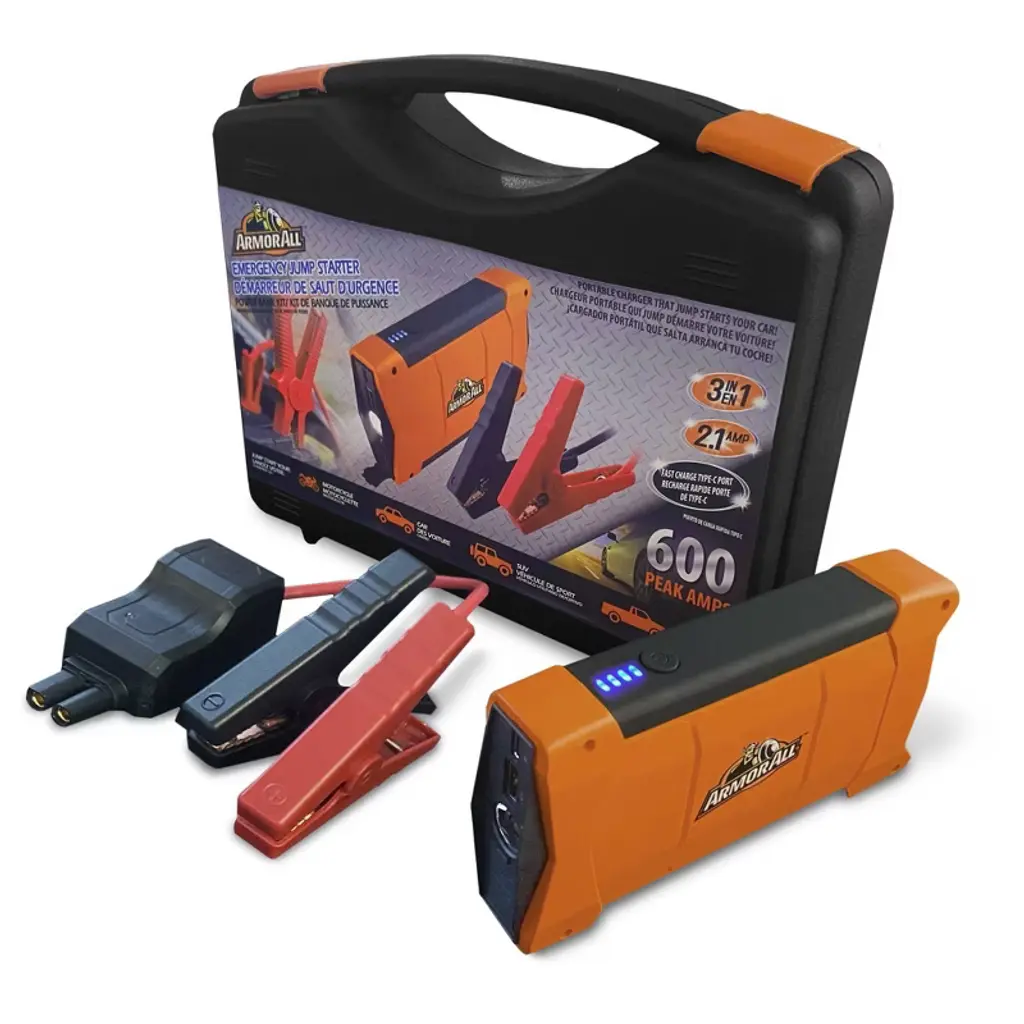 Armor All Emergency Jump Starter: 600 Amp Output, 16 Awg Wire, 2 Ft Cable, 1 Year Warranty, Automotive Battery Charger